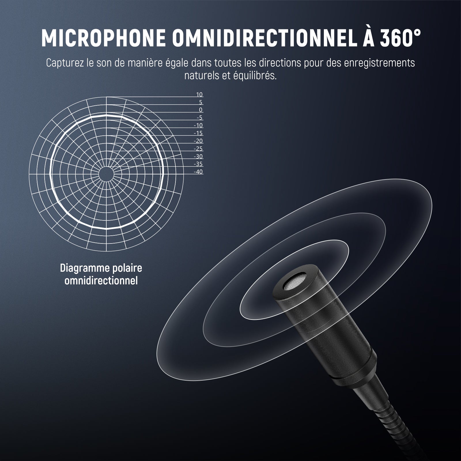 - Condensateur omnidirectionnel pour une haute fidélité : ces microphones à condensateur omnidirectionnels compacts sont très sensibles, capturant les voix de toutes les directions pour une qualité audio HD non compressée. Ils offrent des enregistrements vocaux clairs et nets