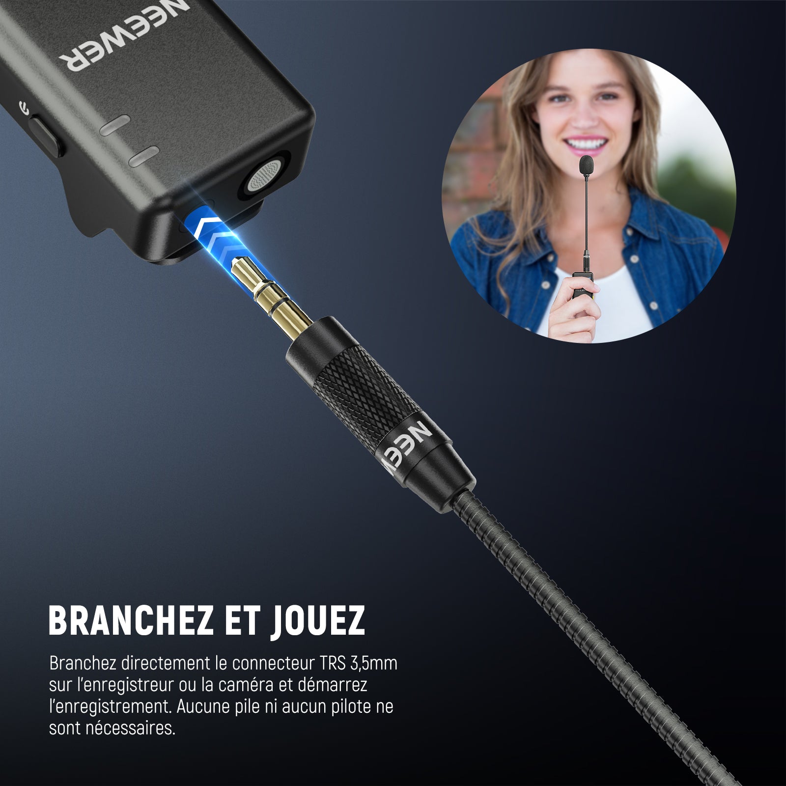 - Compatibilité universelle : doté d'une prise mâle TRS plaquée or de 3,5 mm, le Neewer CM7 est adapté pour les appareils photo, les caméscopes, les enregistreurs audio, les tablettes et les ordinateurs portables avec une prise femelle TRS de 3,5 mm. Également compatible avec Rode Wireless GOII, compatible avec les émetteurs de micro sans fil DJI et les systèmes de microphone sans fil Neewer CM28.