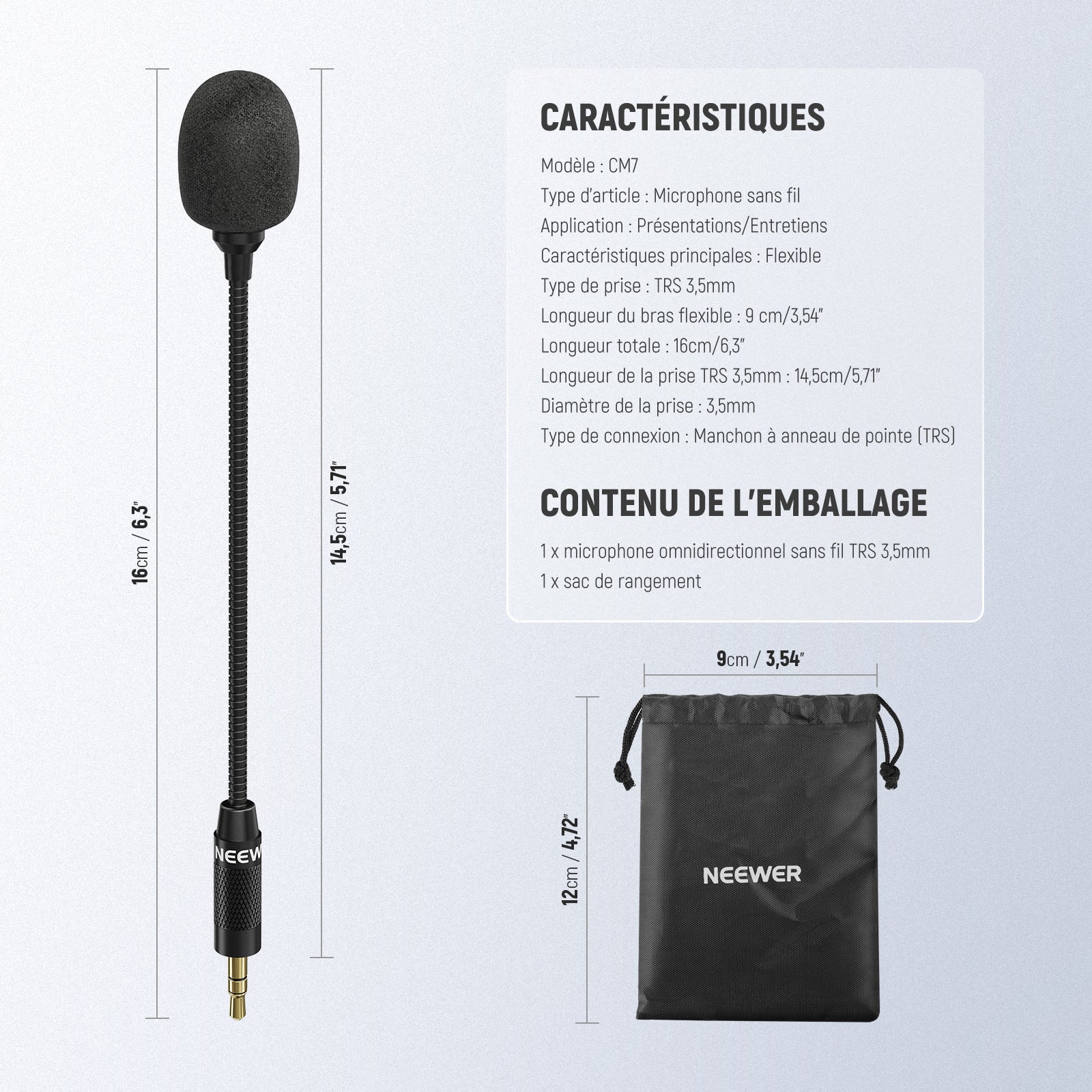 NEEWER CM7 Microphone à condensateur omnidirectionnel TRS 3,5 mm