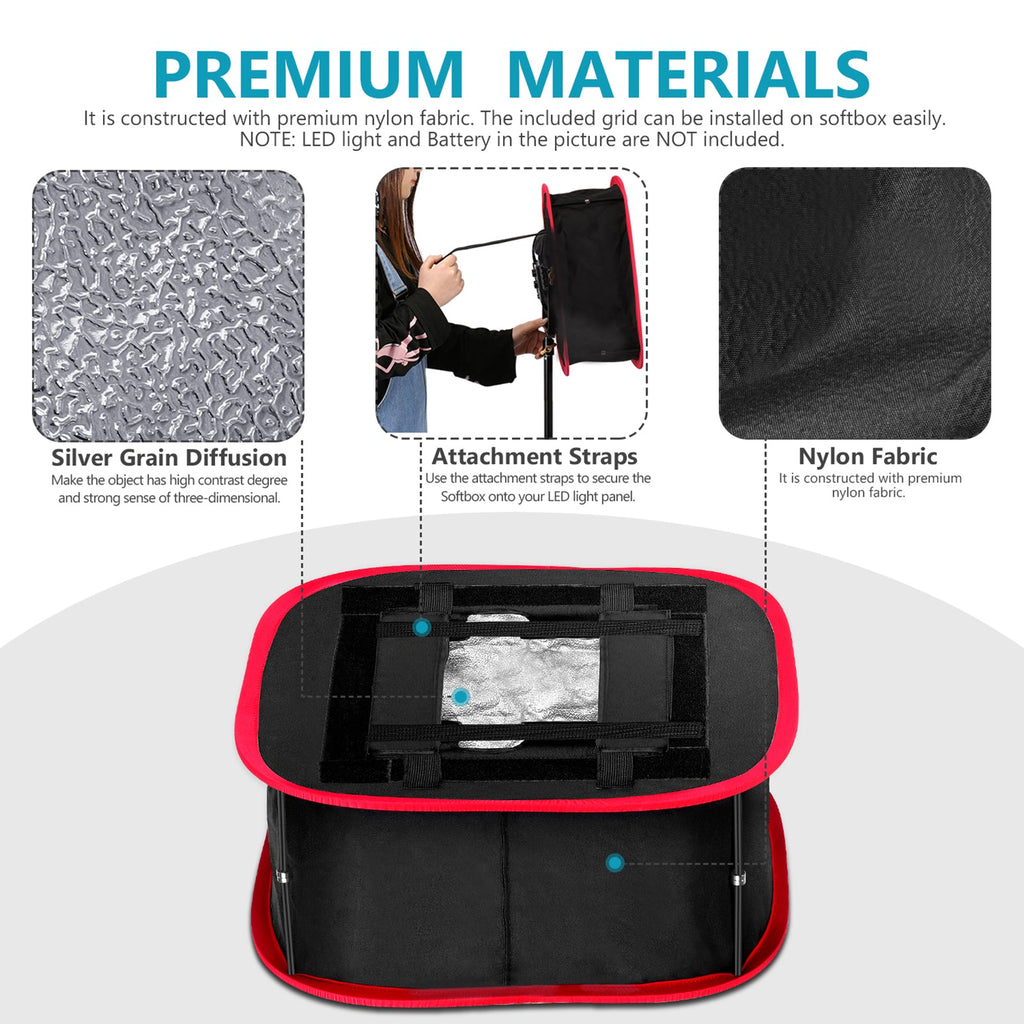 - INSTALLATION FACILE- Expansion complète de la boîte à lumière, il y a 4 tiges magnétiques à chaque coin; Elle peut être attachée à la lumière LED via des sangles de fixation