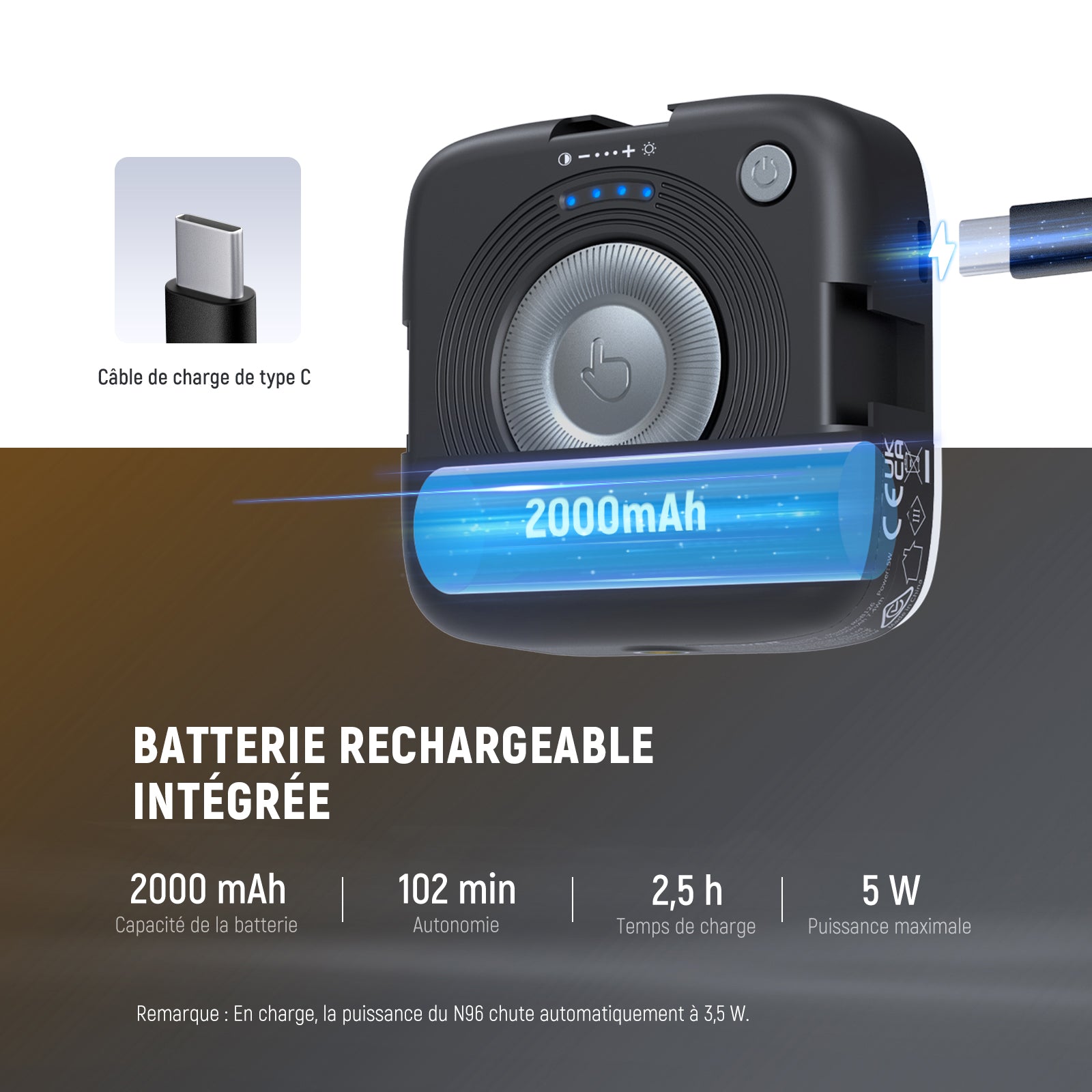 - Alimentation : Batterie intégrée / alimentation USB-C