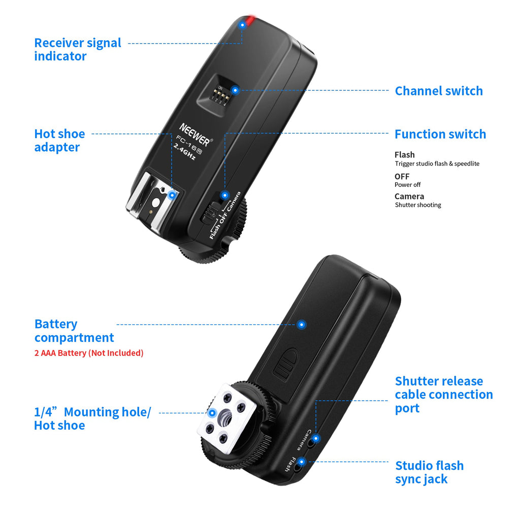 NEEWER FC-16 Récepteur Flash à Distance Sans Fil 16 Canaux 2.4G