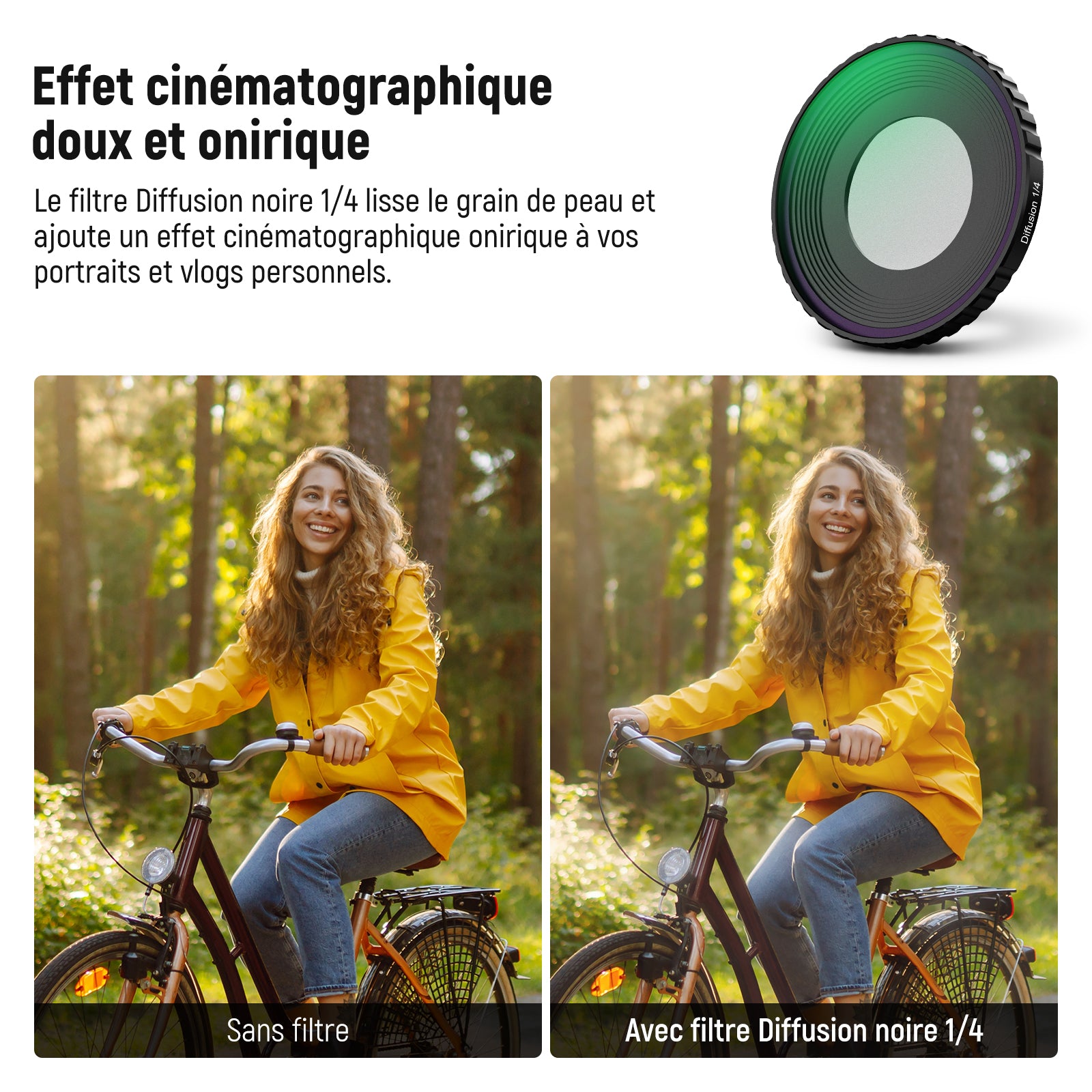 - 【Effet cinématographique doux et onirique】 Le filtre de diffusion noire 1/4 lisse le grain de peau et ajoute un effet cinématographique onirique à vos portraits, selfies et vlogs personnels.