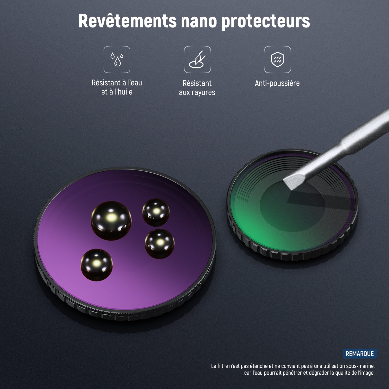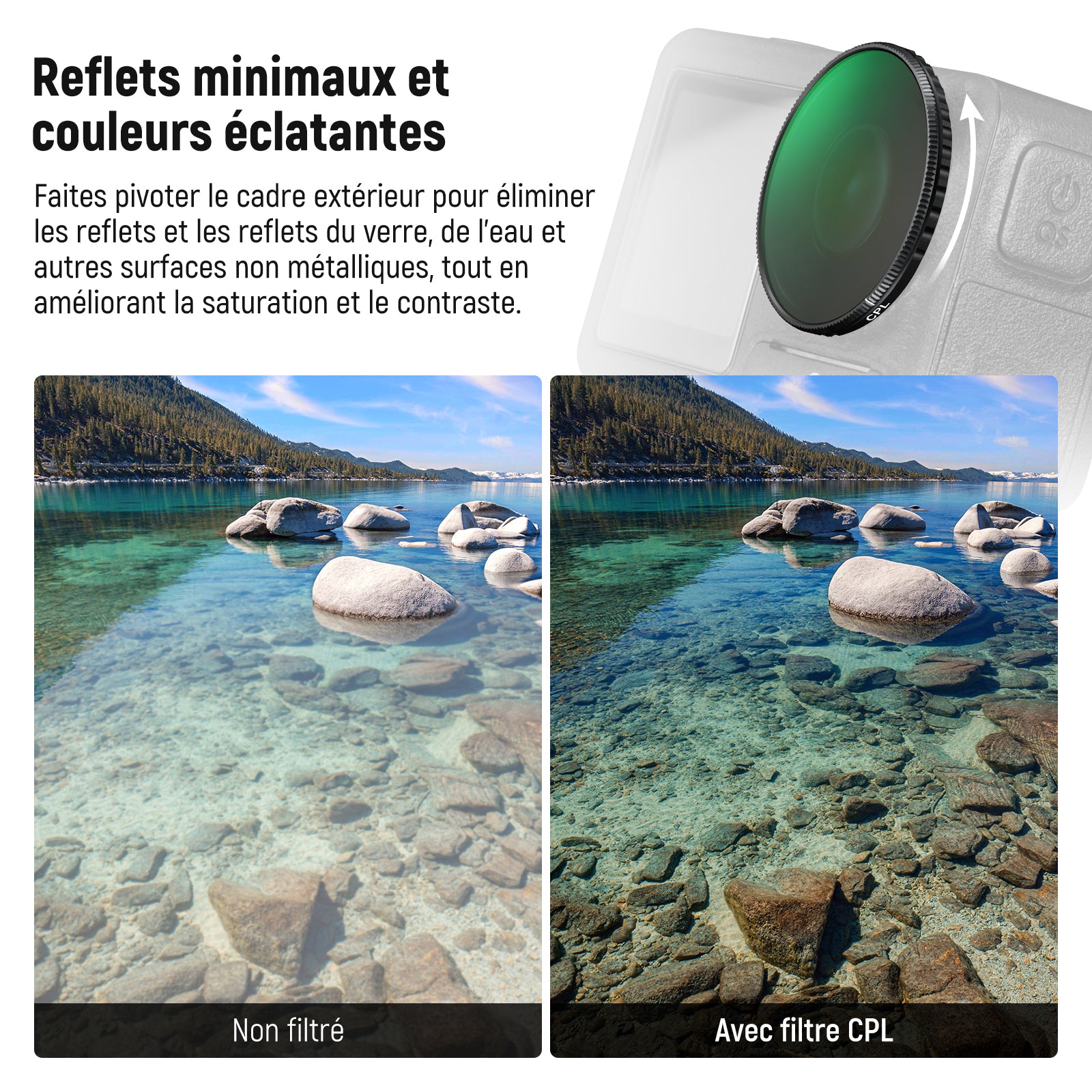 - 【Éblouissement minimal et couleurs éclatantes】 Le filtre polarisant circulaire élimine les reflets et les reflets du verre, de l'eau et autres surfaces non métalliques, tout en améliorant la saturation et le contraste.