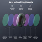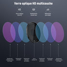 - Matériaux principaux : Verre optique / Alliage d’aluminium