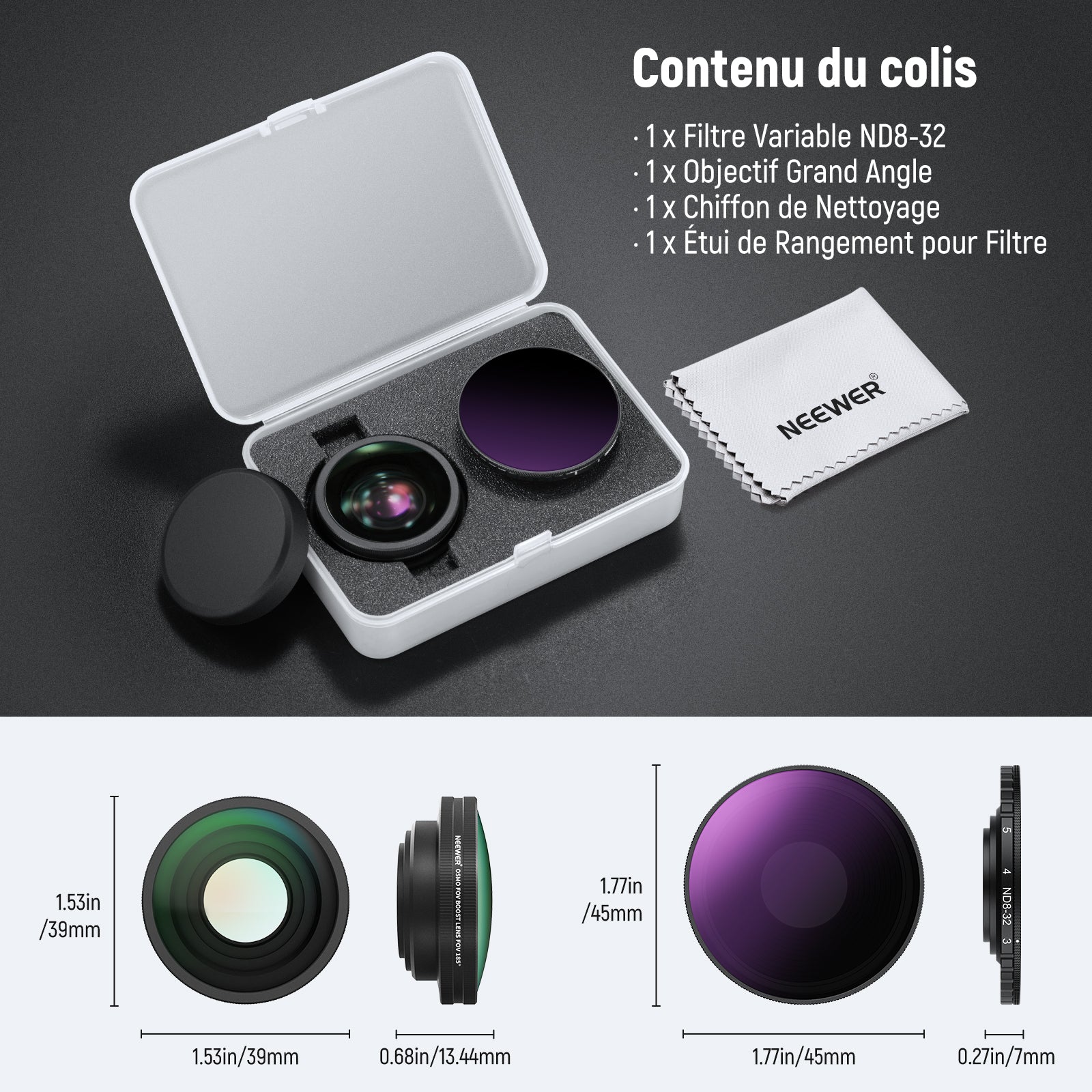 NEEWER Kit Accessoire d'Objectif et Filtre pour DJI Osmo Action 5 Pro/4