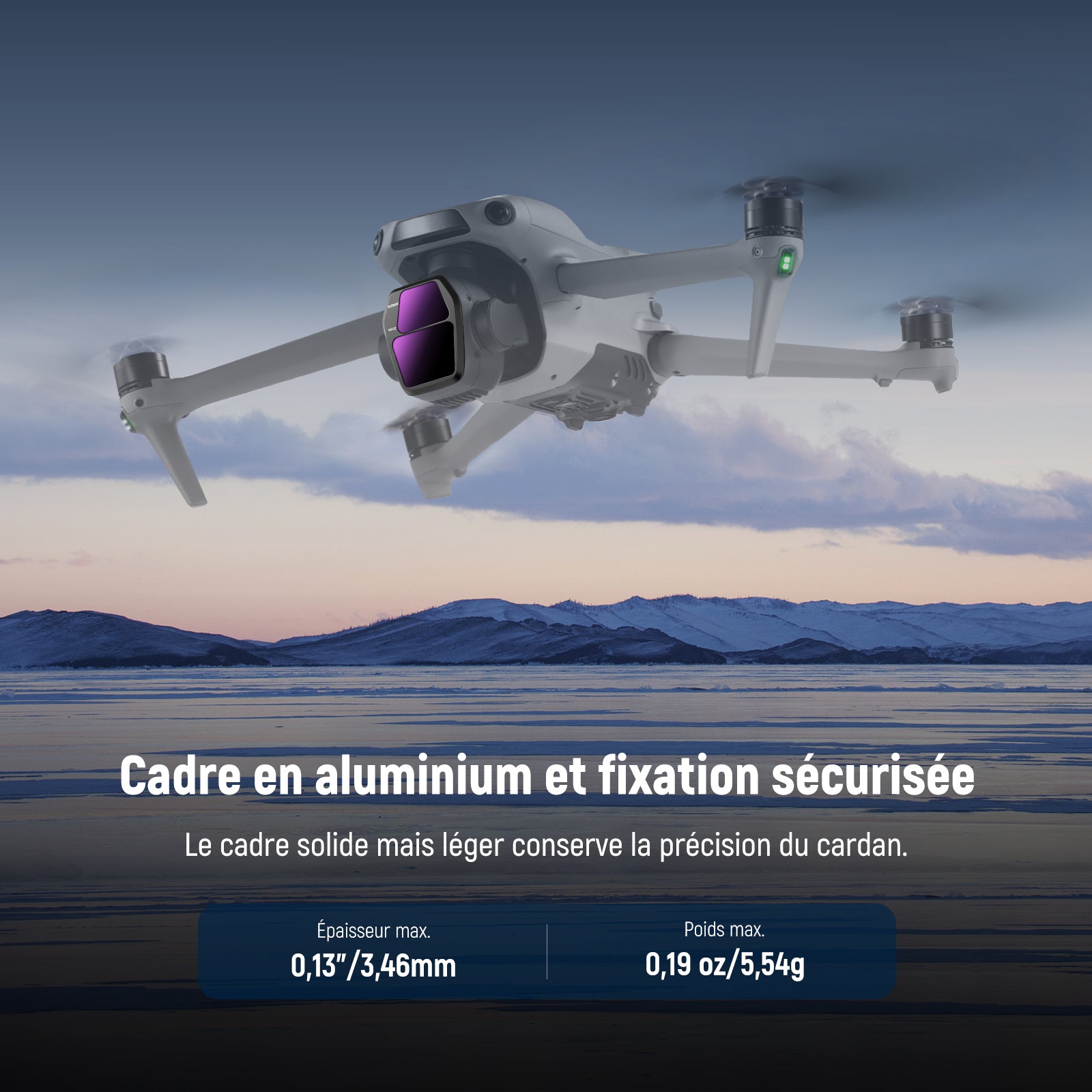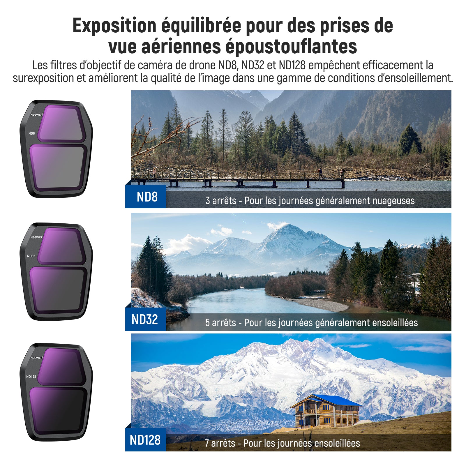 • Compatible avec DJI Air 3S : compatible avec le drone DJI Air 3S, ce kit de filtre comprend un ND8, un ND32, un ND128 et un filtre CPL (polarisant circulaire) pour la photographie aérienne professionnelle et la vidéographie