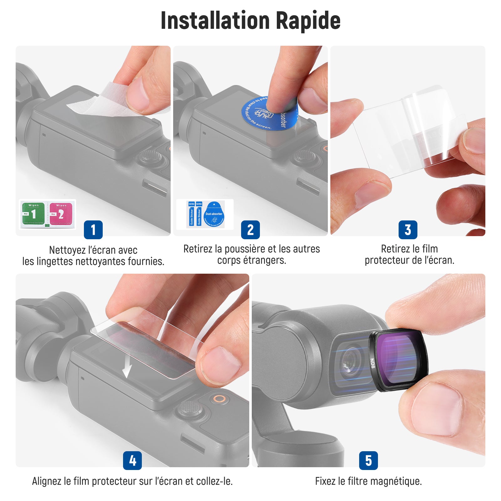 - 【Fixation magnétique pratique】 Accrochez directement le filtre via ses aimants intégrés pour une configuration rapide et sûre. Le filtre léger maintient la précision de l'étalonnage du gimbal et maintient votre appareil photo portable pour la création de contenu en mouvement
