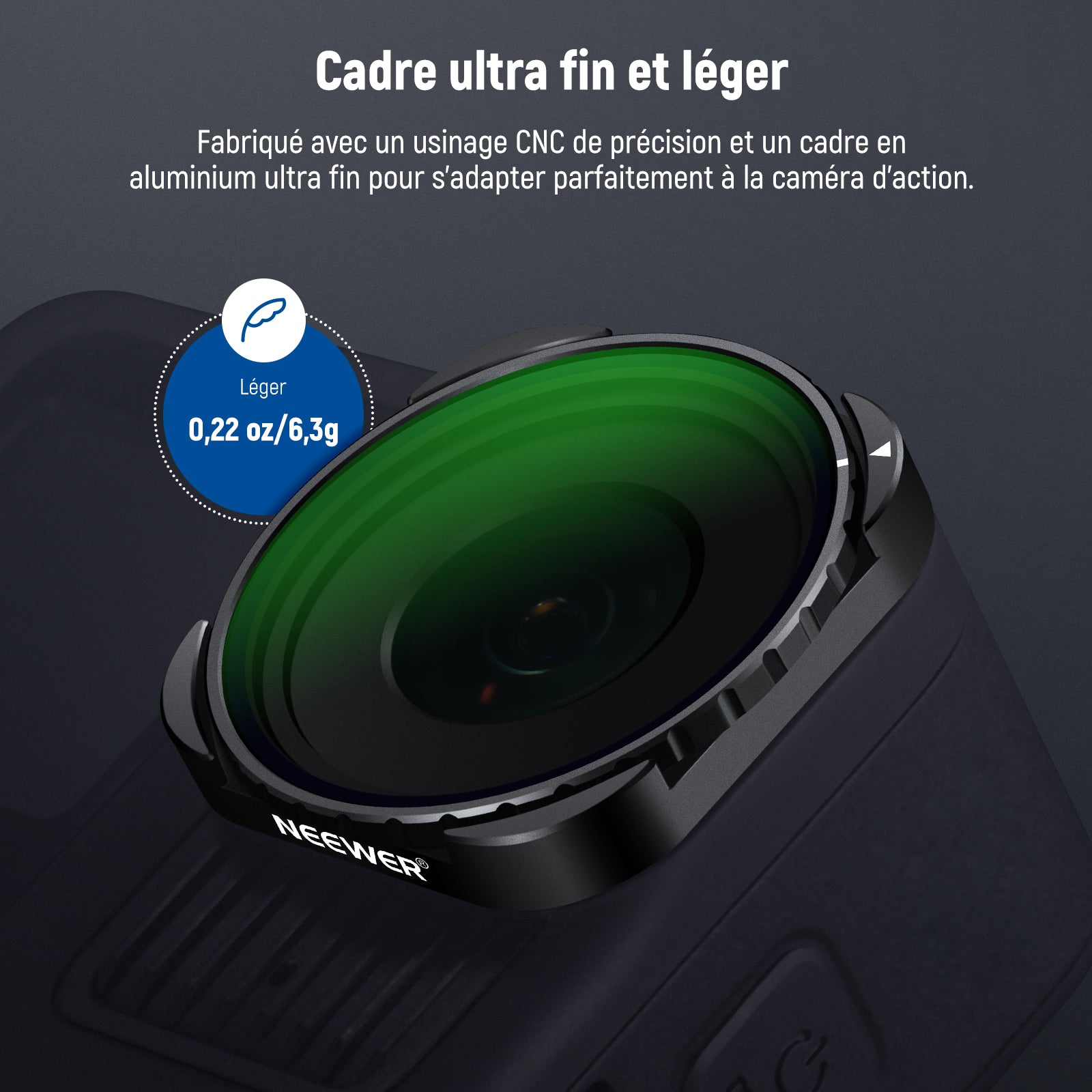 - Installation efficace : retirez l'objectif d'origine de votre caméra d'action. Alignez le filtre avec la position de l'objectif, puis tournez doucement pour le fixer. La construction légère ne vous alourdira pas lorsque vous photographiez en déplacement. Remarque : bien que le filtre soit étanche, il n'est pas destiné à être utilisé sous l'eau