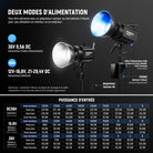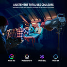 - Modes d'éclairage : CCT/HSI/RGBCW/SCENE/Gel/FX/Source lumineuse