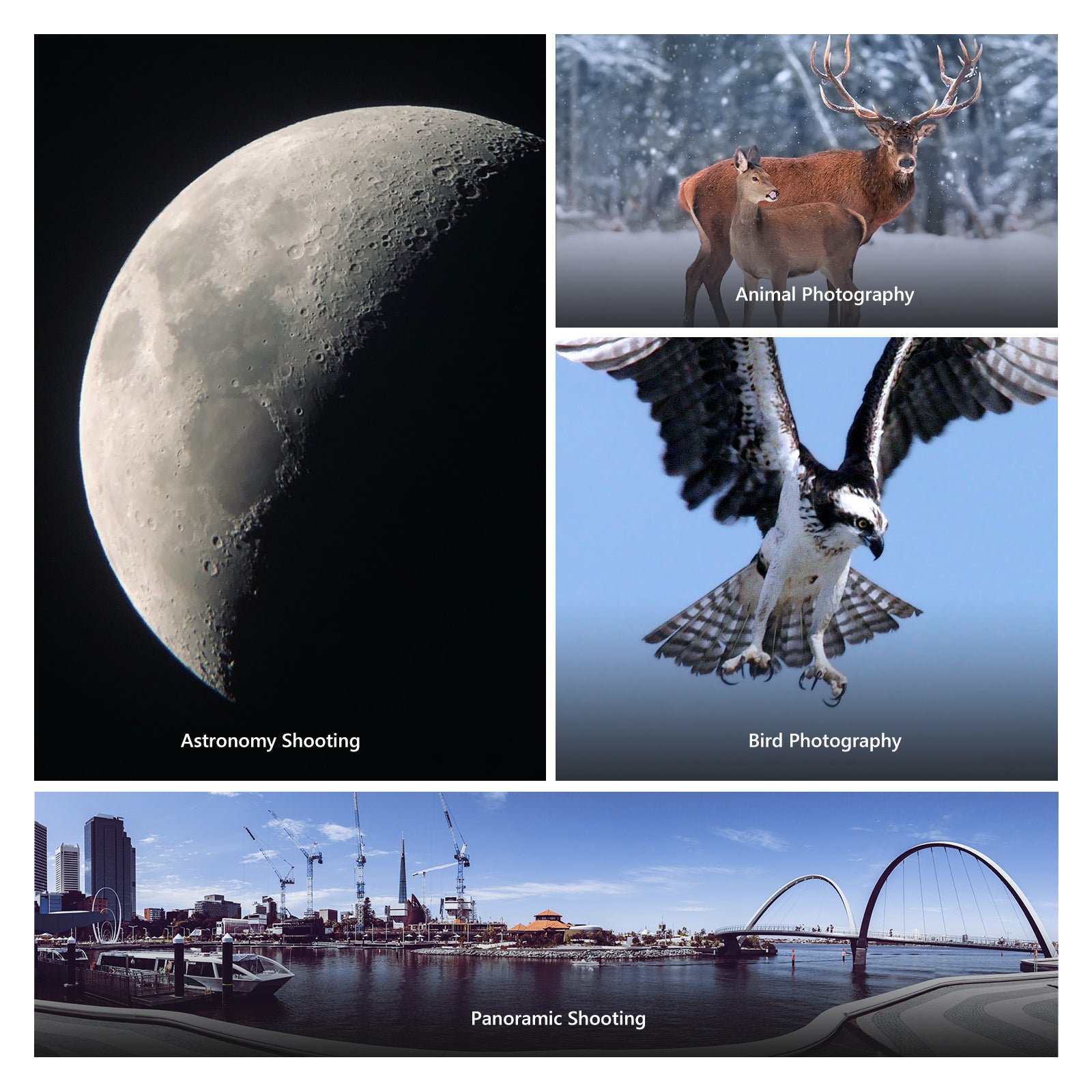 - Mouvement fluide de la caméra avec structure portante- La tête de trépied à cardan équilibre la caméra sur les axes verticaux et horizontaux et vous permet de faire pivoter et de faire pivoter votre caméra avec une grande précision. Construit avec une structure portante, il est plus lisse et beaucoup plus facile à régler. Idéal pour l'observation des oiseaux et les photographes qui souhaitent capturer des images nettes de sujets en mouvement rapide dans la photographie animalière et sportive