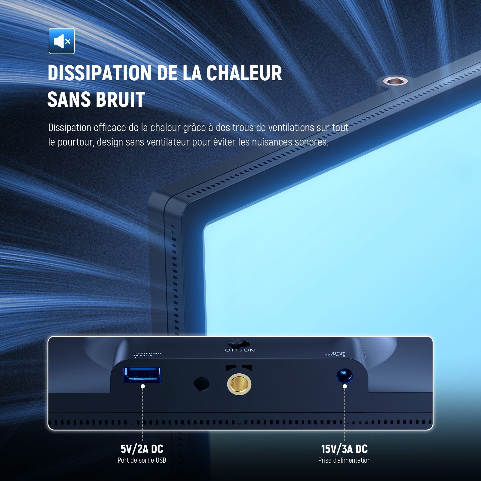 - 【Sortie USB pour Alimentation Inversée】 Engagé dans une expérience utilisateur améliorée, le GL25C a été mis à niveau avec un port USB qui peut fournir une alimentation inversée à 5V/2A pour charger des téléphones ou d'autres appareils. Le grand écran doté d'une interface utilisateur affiche les paramètres spécifiques de la lumière, ce qui vous permet de saisir rapidement les réglages précis d'un coup d'œil après chaque ajustement