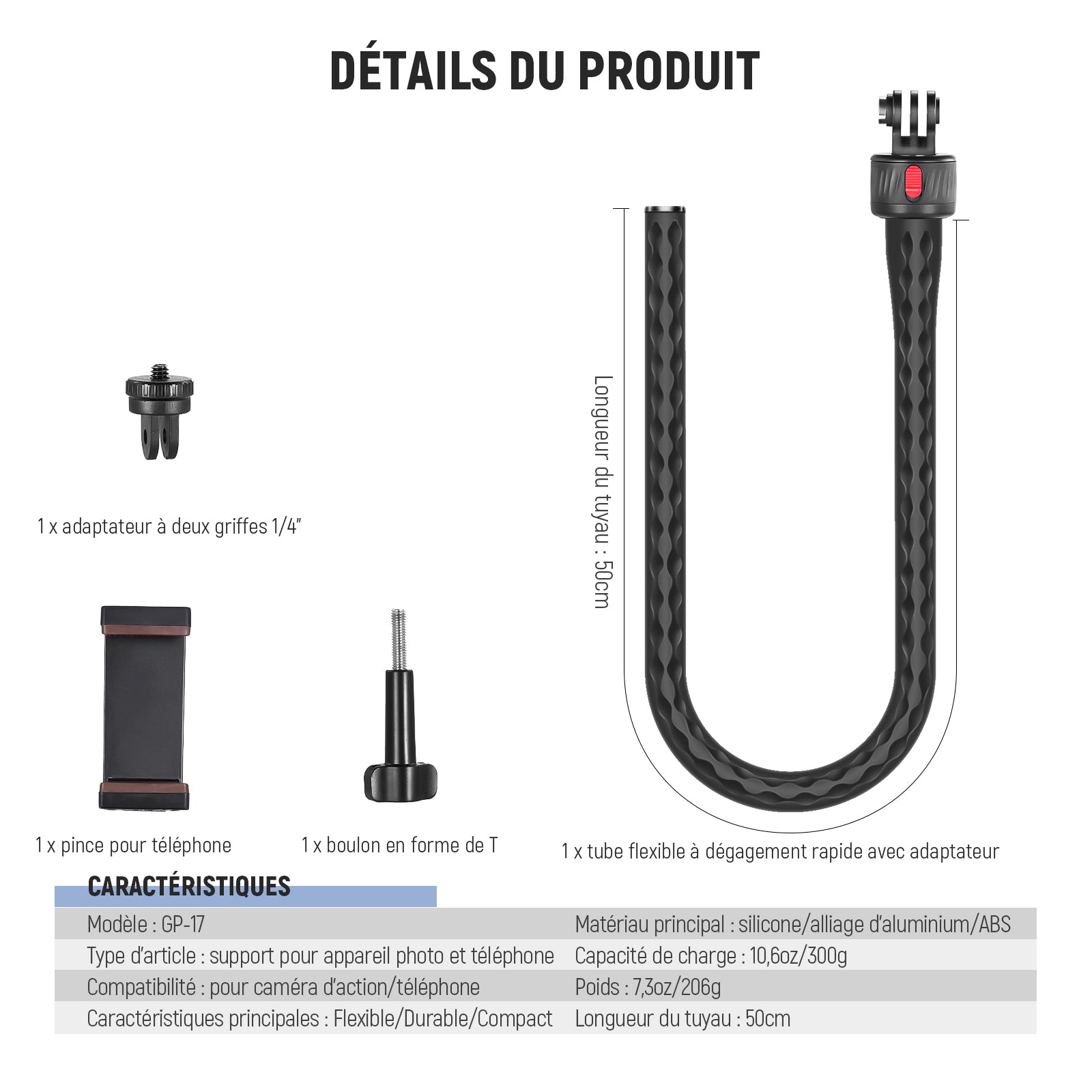 NEEWER GP-17 Pince de fixation flexible à dégagement rapide Pour GoPro Insta360 DJI Phone
