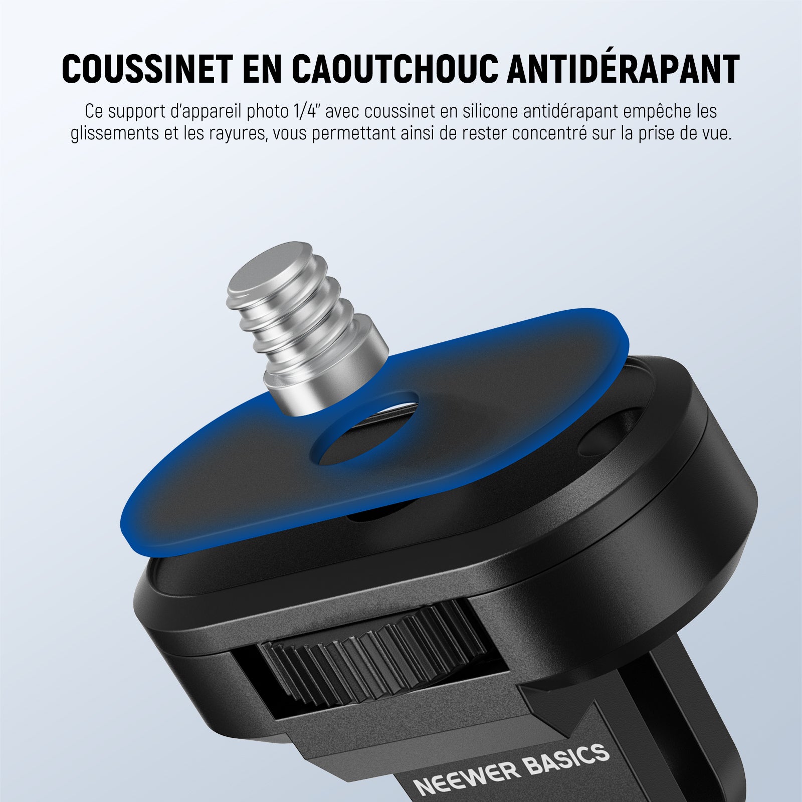- 【Coussin en caoutchouc antidérapant】 Ce support de caméra 1/4" est livré avec un coussinet en silicone antidérapant sur le dessus, empêchant votre appareil de bouger pendant l'utilisation tout en le protégeant des rayures et vous permettant de vous concentrer davantage sur votre photographie ou votre vidéographie