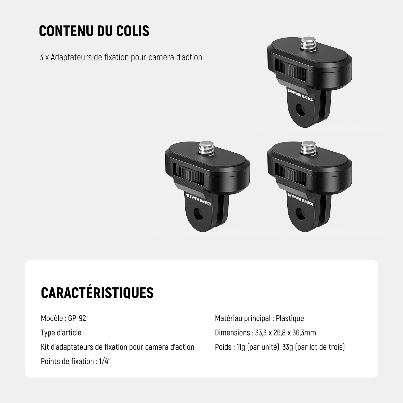 NEEWER GP-92 Kit de 3 adaptateurs de Montage pour Trépied For Insta360