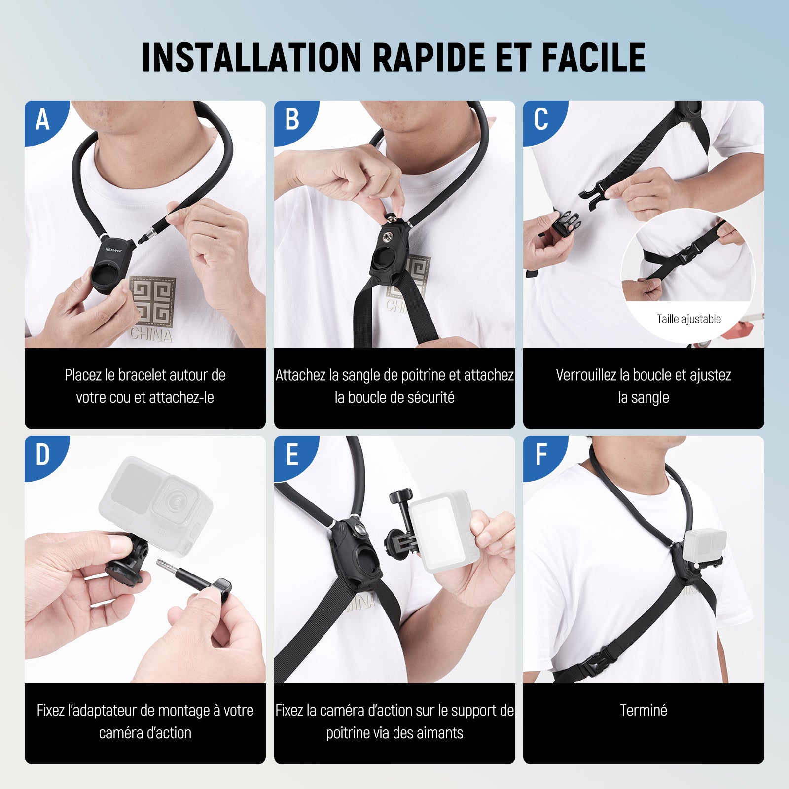 - Pour l'enregistrement vidéo POV- Conçu pour les smartphones et les caméras d'action, le support cervical à libération rapide magnétique et la sangle de poitrine permettent des prises de vue immersives sans les mains. La sangle de poitrine adjustable et la charnière robuste entièrement en métal garantissent un maintien sécurisé, tandis que la housse en silicone douce assure un confort autour du cou ou de l'épaule. Équipé d'une sangle de harnais de poitrine, il permet un tournage stable pendant votre course. Remarque : ne pas utiliser le support magnétique pour téléphone dans des scènes d'action à grande vitesse