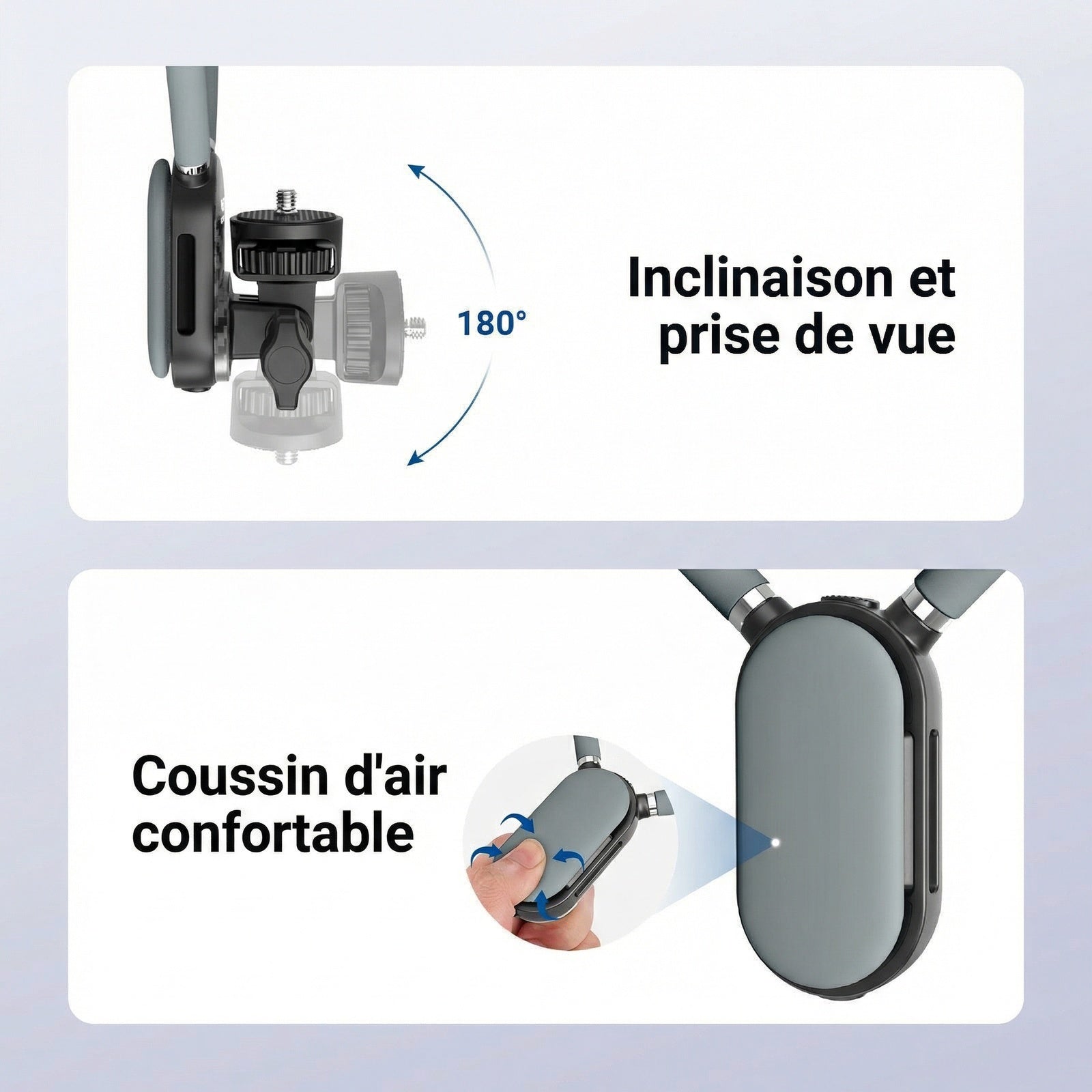 • 【Changement rapide horizontal/vertical】 Pour les prises de vue subjectives avec des caméras d'action, le support de cou permet de passer instantanément d'une vue horizontale à une vue verticale, avec une inclinaison à 90°. Un accessoire indispensable pour les créateurs de contenu et les influenceurs.