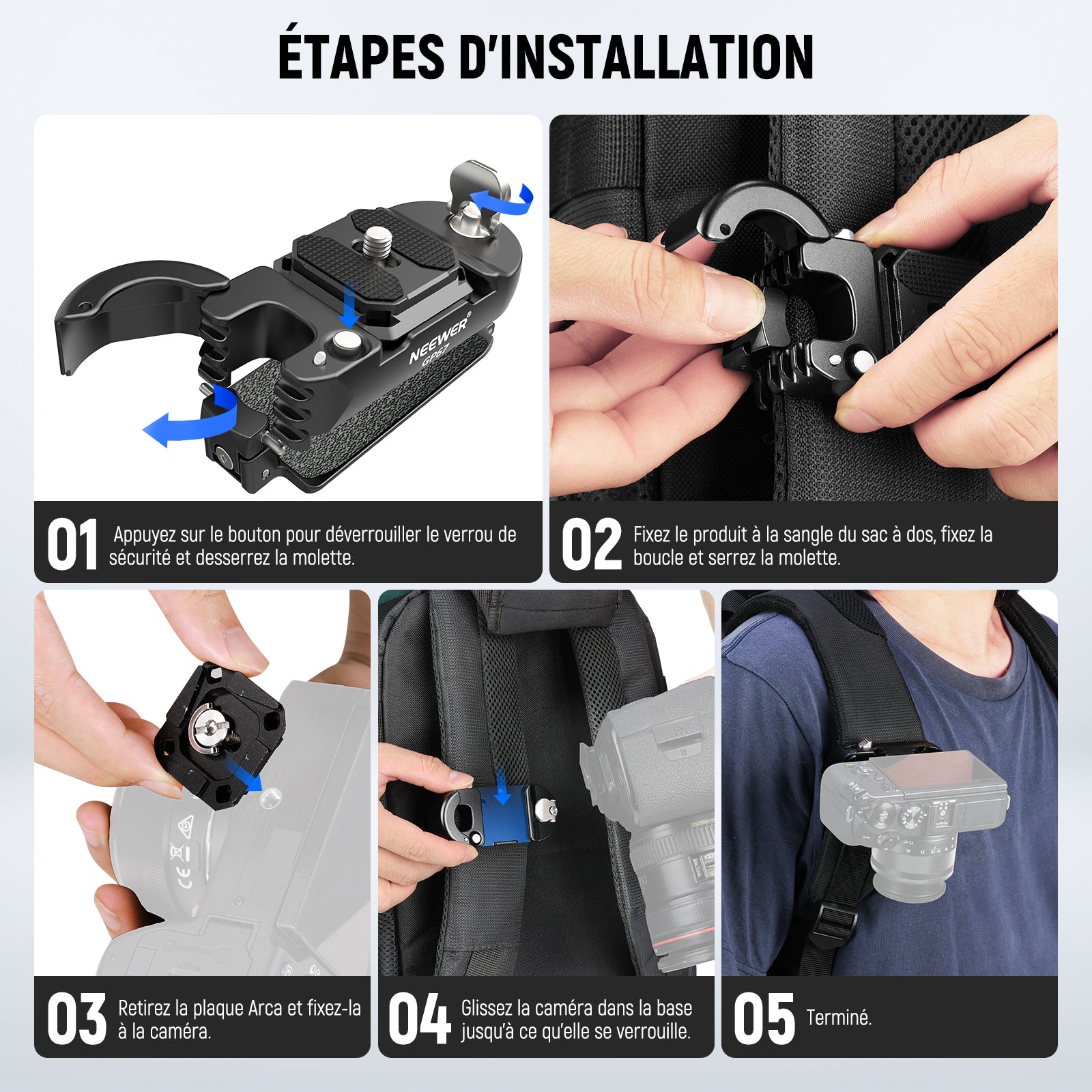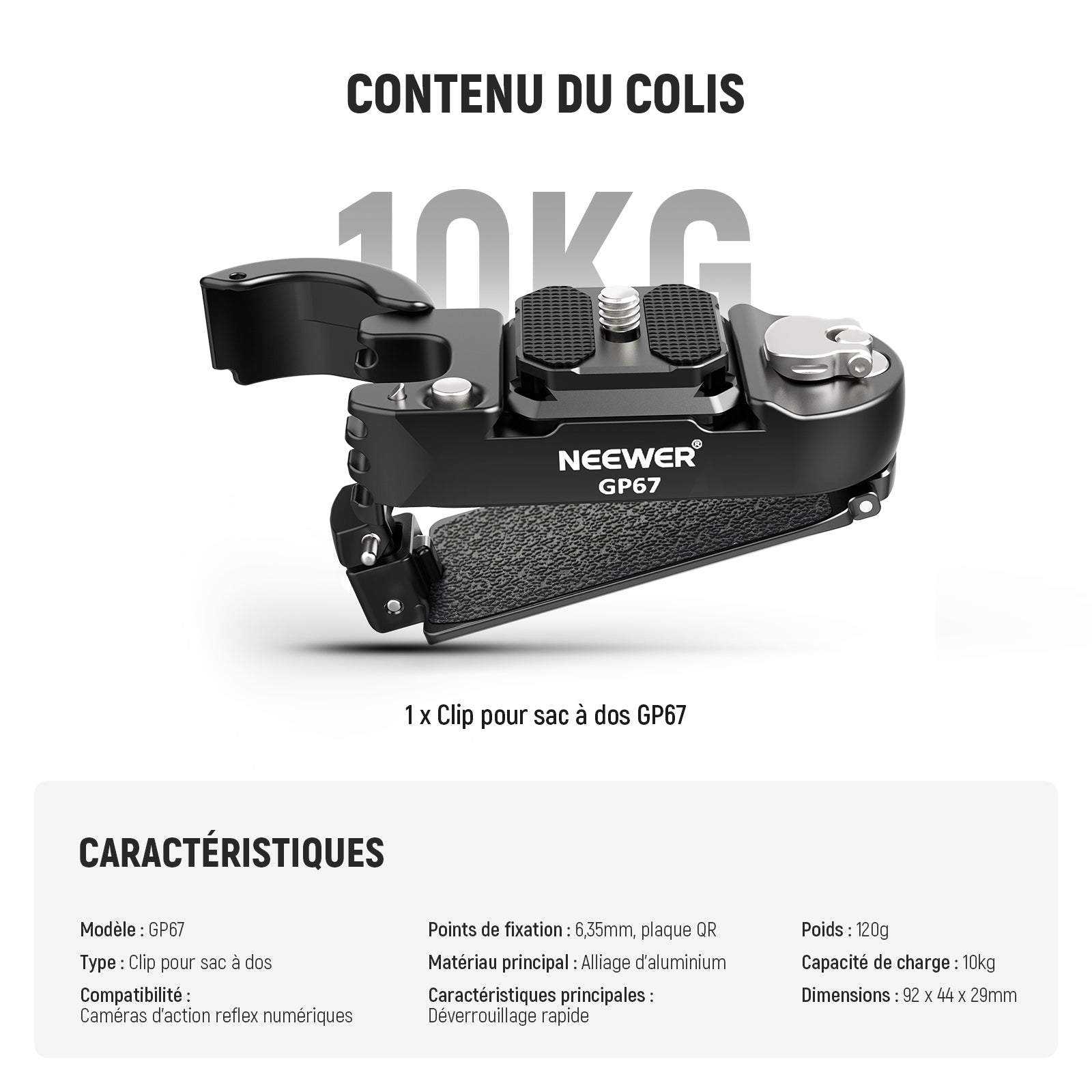 NEEWER GP67 Clip Fixation Caméra pour Sac à Dos