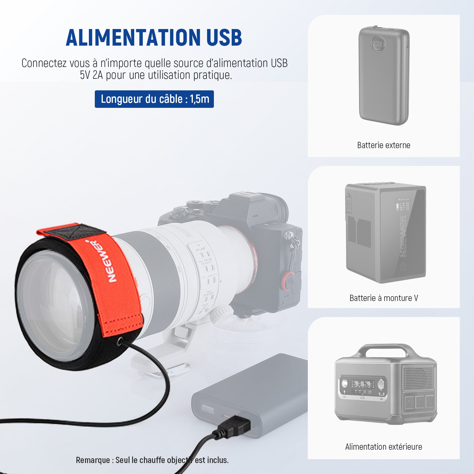 - Chauffage rapide pour objectif : le chauffe-objectif USB NEEWER HW-17B dispose d'un élément chauffant amélioré avec un système de réchauffement rapide et continu qui augmente doucement la température de l'objectif au-dessus du point de rosée, empêchant efficacement la buée, la rosée et la condensation pour garder votre vue claire dans des conditions froides ou humides, prolongeant votre session de prise de vue