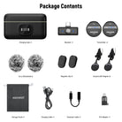 Lightweight Clip On Microphones- Shaped as a mini button, each lapel transmitter is only 0.5oz/14g—easy to clip on shirts, clothes or magnetically attach via a lanyard, or just handheld. The wireless omnidirectional condenser mic ensures excellent audio with minimal background noise at a 78dB signal to noise ratio and handles a maximum 115dB sound pressure level for recording high pitched sounds