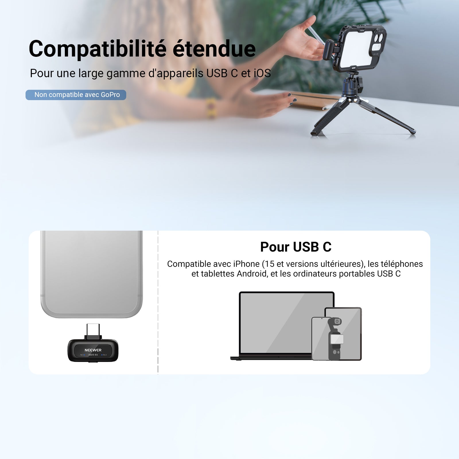- 【Simplifiez votre flux de travail】 Cet émetteur micro sans fil se connecte directement à votre smartphone ou tablette via l'application NEEWER View: aucun récepteur ni câble n'est nécessaire et aucun port de charge n'est occupé.
