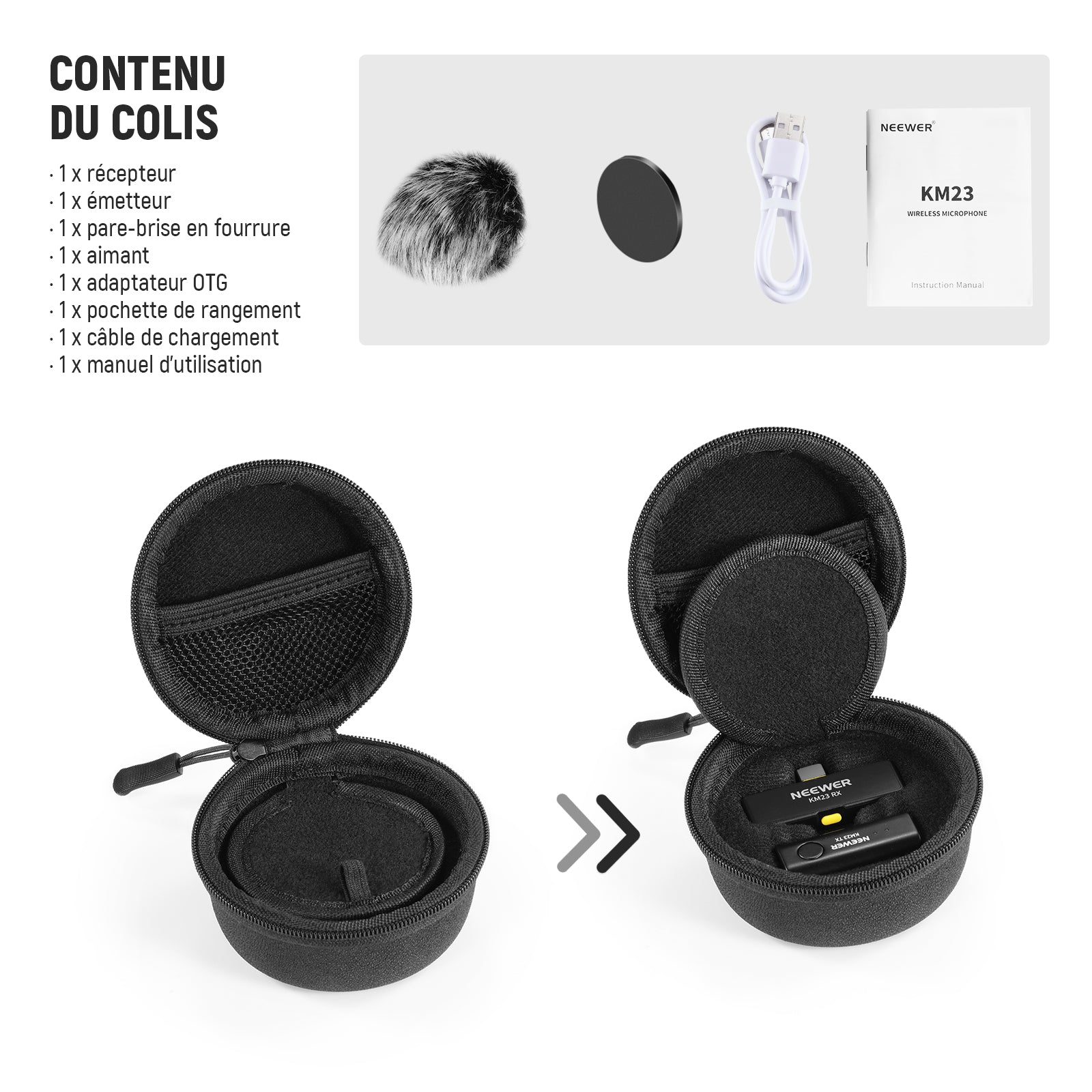 NEEWER KM23 Kit de Microphone Cravate sans Fil pour USB C