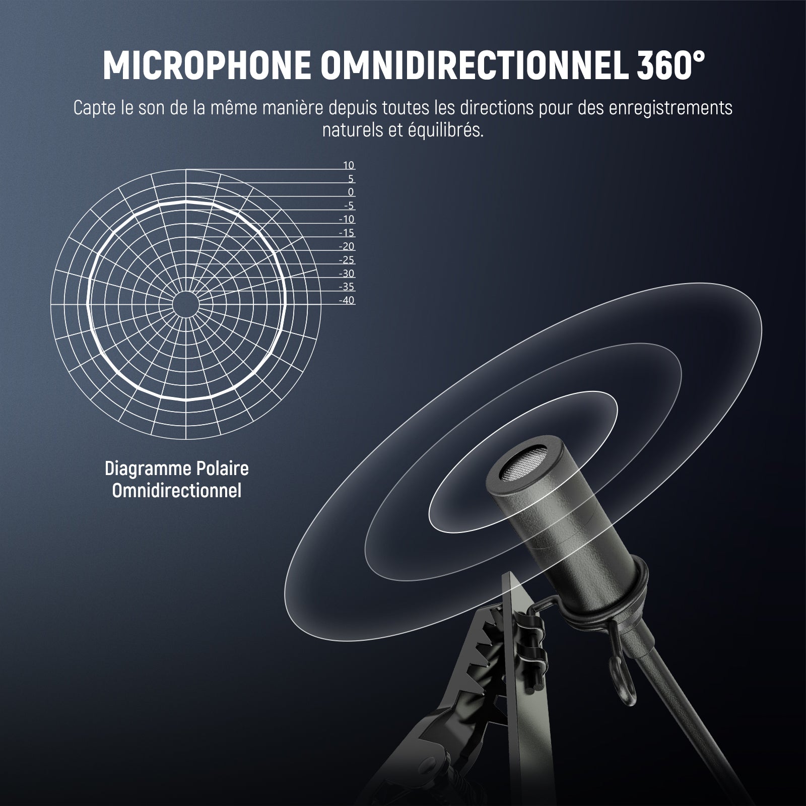 - 【Microphone Omnidirectionnel à Condensateur】 Doté d'une directivité omnidirectionnelle qui capte sur 360° et d'un taux d'échantillonnage 192KHz/24Bit, ce micro à condensateur enregistre une voix claire, nette et non compressée dans toutes les directions
