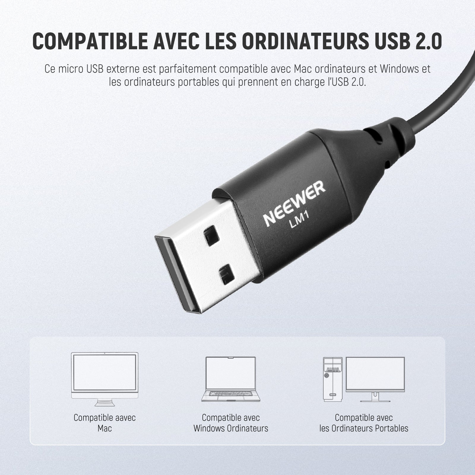 NEEWER LM1 Micro-Cravate USB A Omnidirectionnel 2m Plug & Play