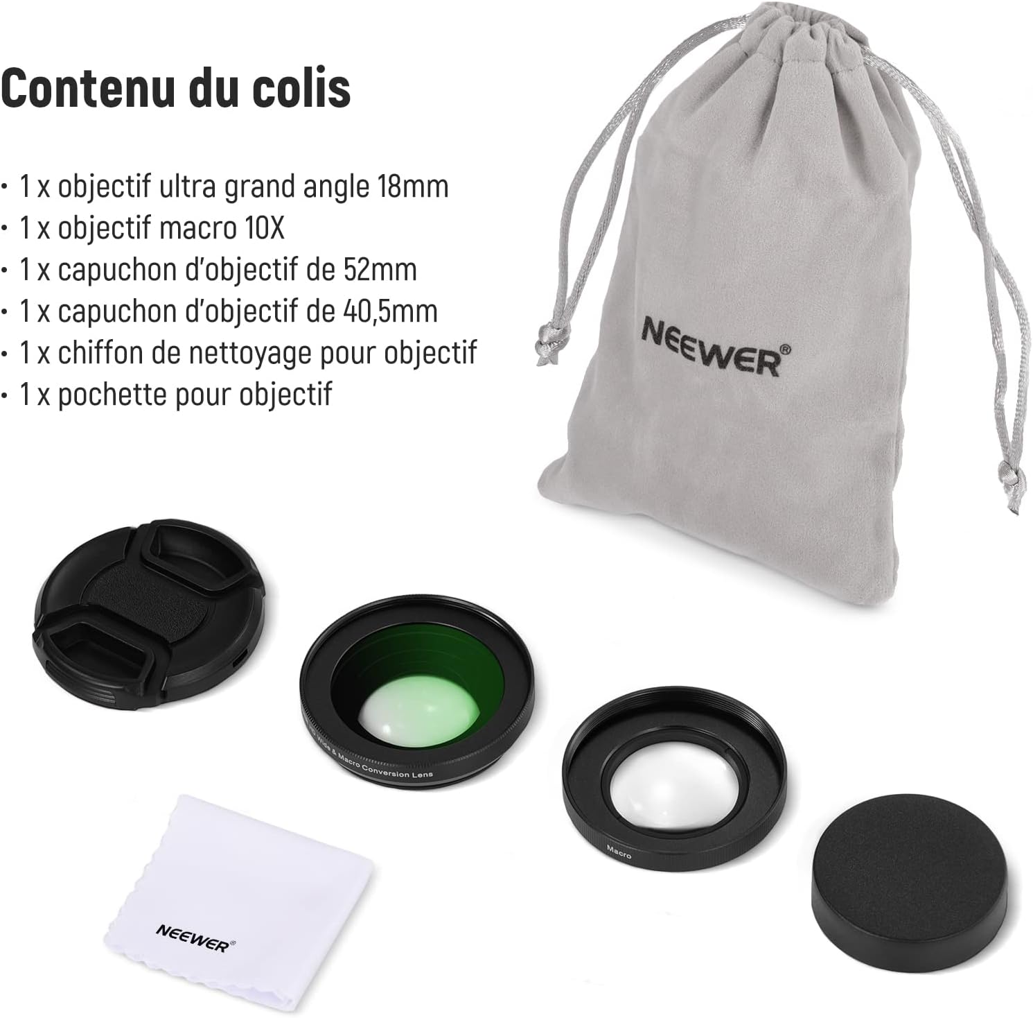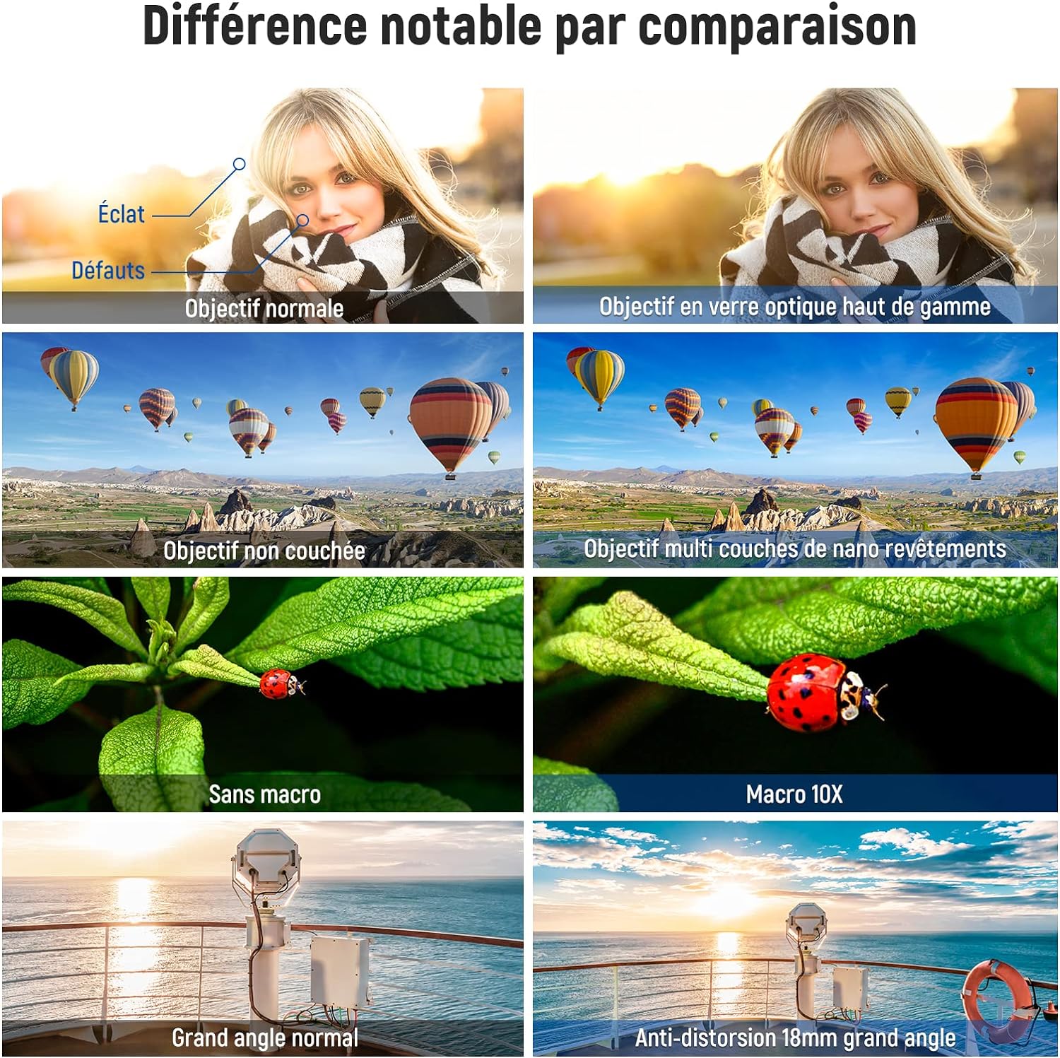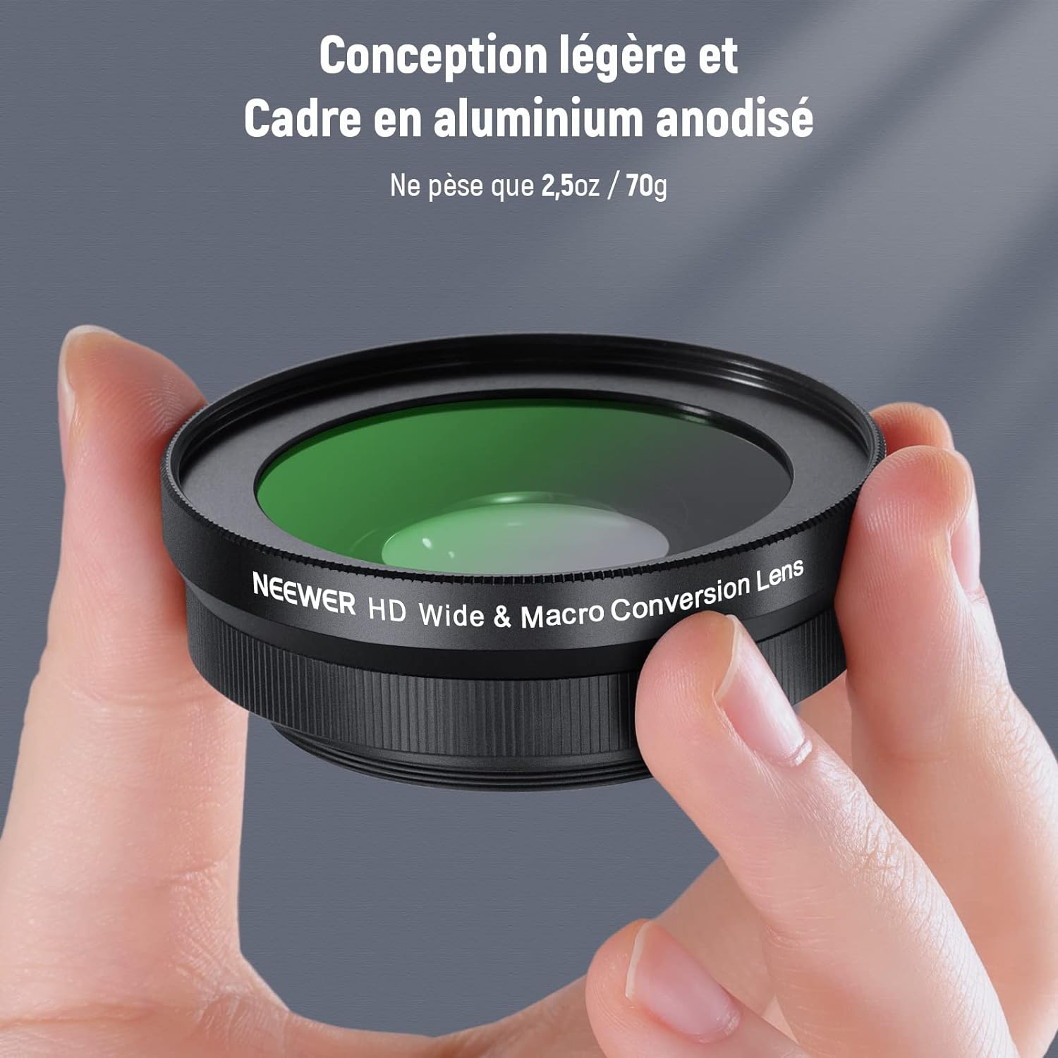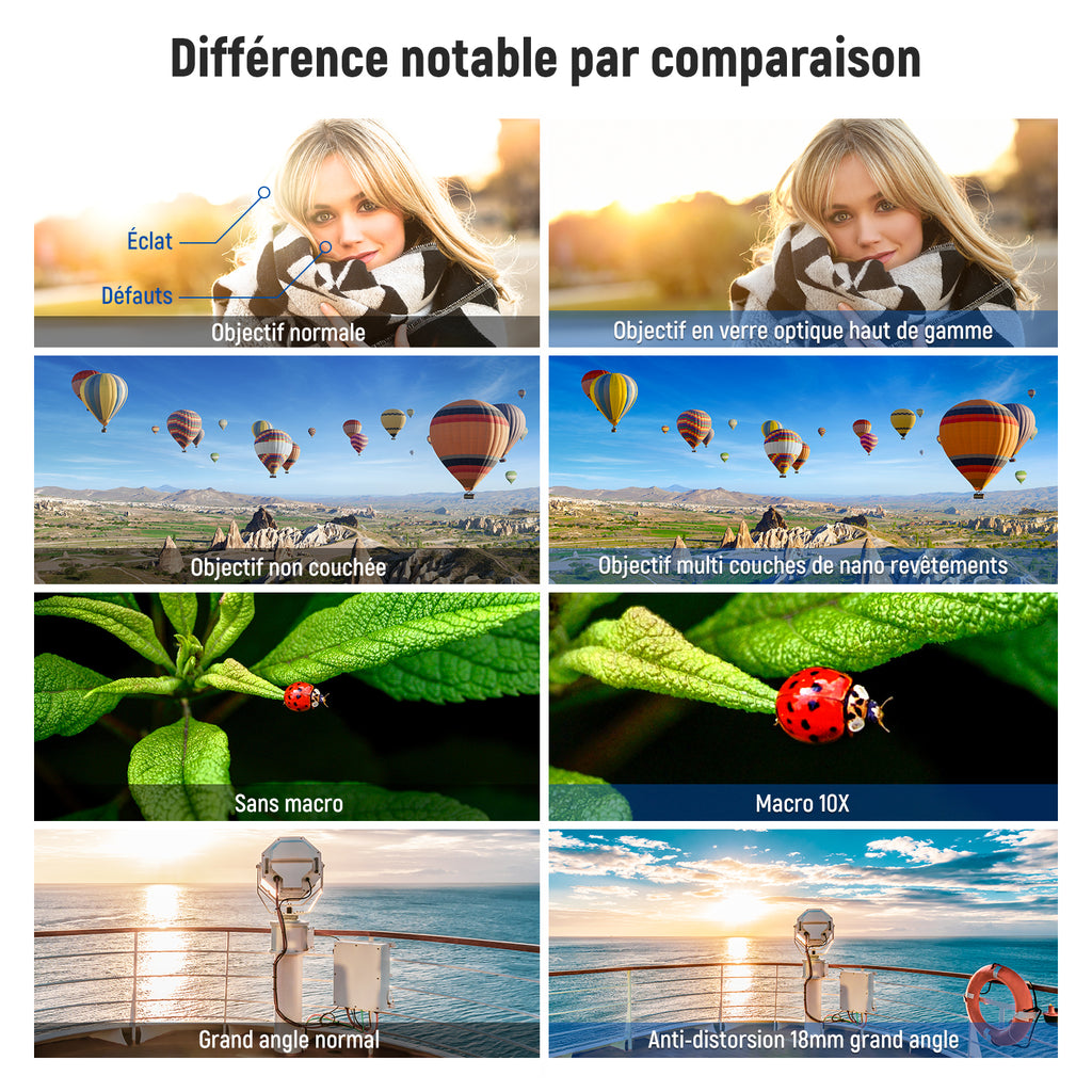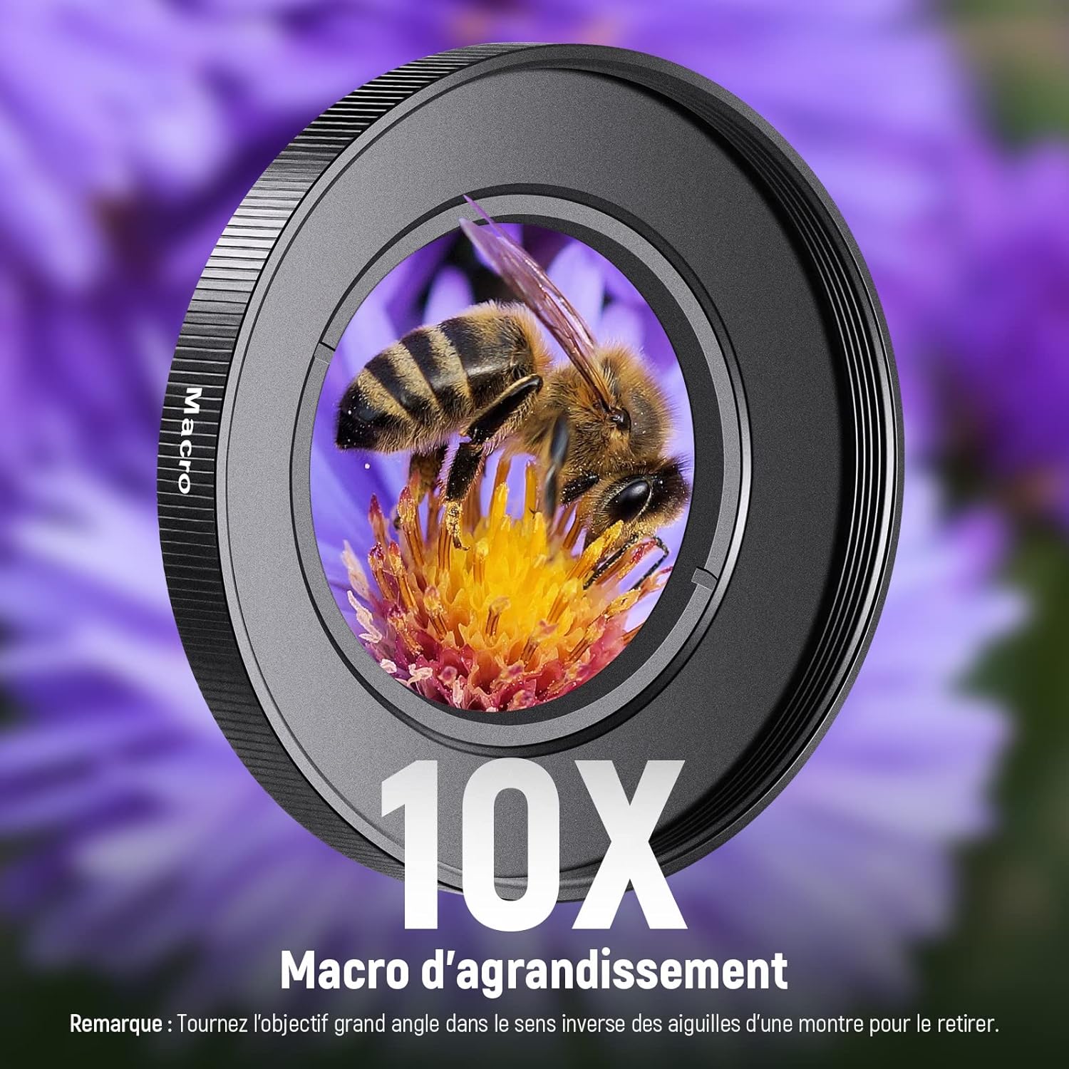- 【Construction à deux éléments multicouches】Construit avec 2 groupes de verres correcteurs optiques HD à deux éléments, associés à plusieurs couches de revêtements nano pour réduire la réflexion et l'éblouissement, l'objectif macro grand angle offre des images haute résolution avec des couleurs naturelles. Pas de distorsion ni d'aberration chromatique