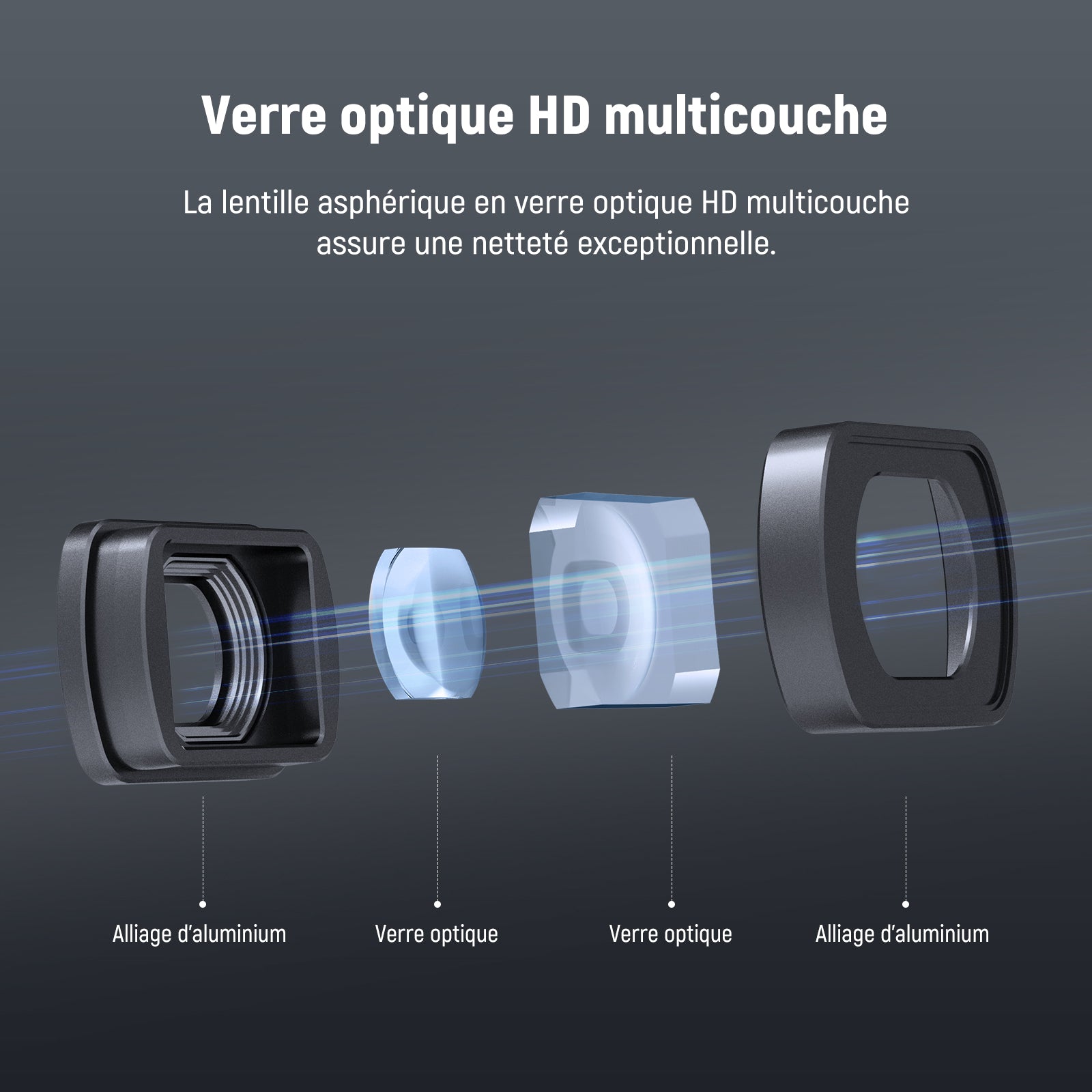 - Matériau principal : Verre optique