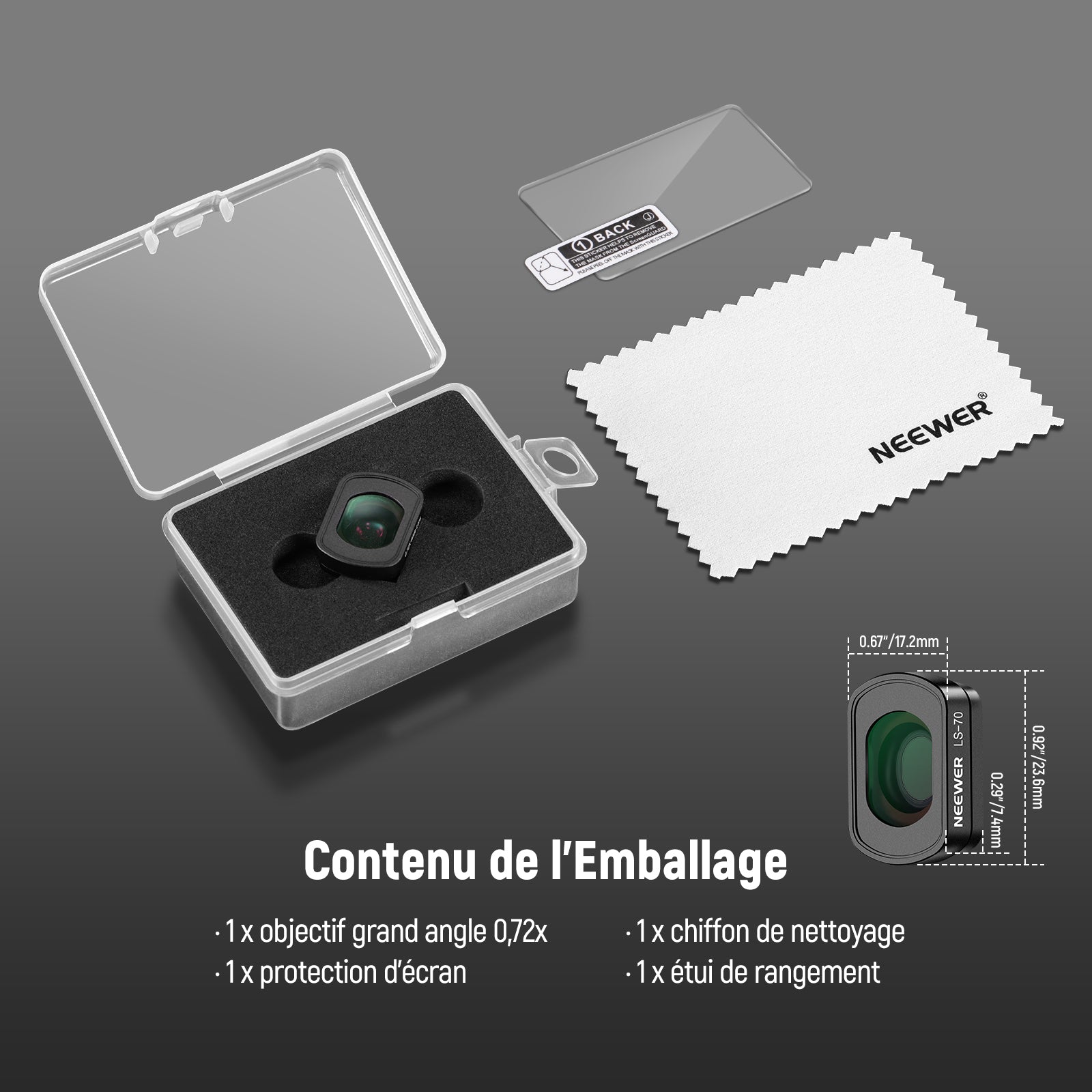 NEEWER LS-70 Objectif Grand Angle 0,72 x FOV 112° pour DJI Osmo Pocket 3