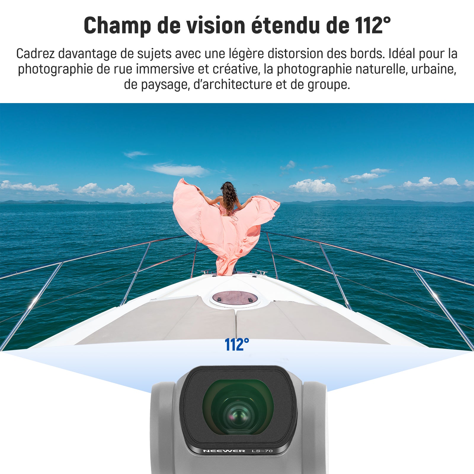 - 【Capture plusieurs sujets dans le cadre】 Élargissez le champ de vision (FOV) à 112° et encadrez plusieurs sujets avec une légère distorsion des bords : idéal pour la photographie de rue immersive et créative, pour les photos naturelles et urbaines, de paysage, d'architecture et de groupe. Accessoires photo essentiels pour caméra d'action et équipement indispensable pour les créateurs de contenu et les influenceurs.