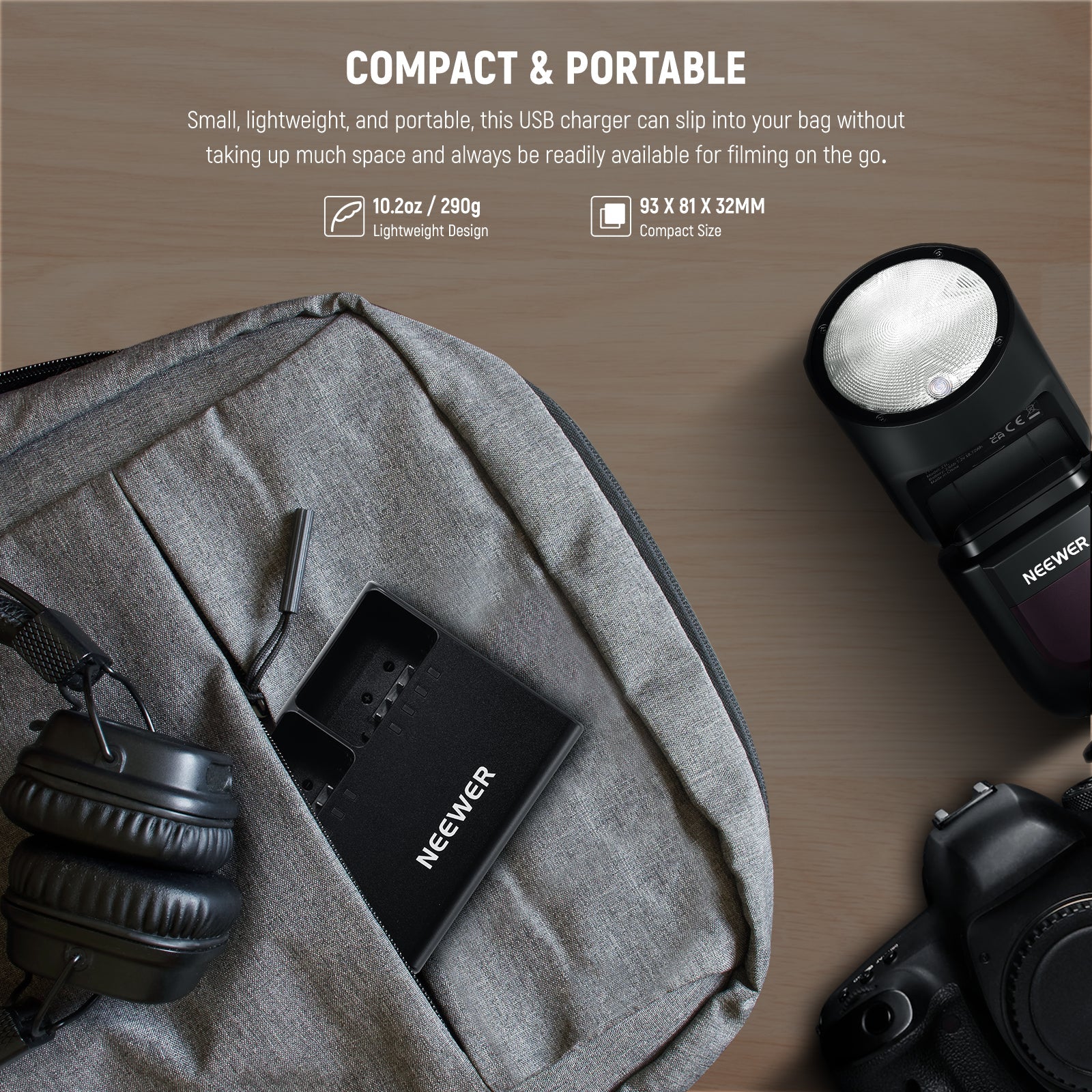 - Exclusif pour Z2/Z1 Speedlite Flash- Ce double chargeur USB est exclusivement conçu pour charger des batteries rechargeables 7,4V/2600mAh pour NEEWER Z2-S, Z2-N, Z2-C, Z1-S, Z1-N et Z1-C. flash speedlite