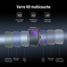 - Verre optique HD multicouche : le verre HD de qualité supérieure garantit une image claire et une reproduction précise des couleurs. Plusieurs revêtements de protection résistent à l'eau, à la poussière, à l'huile et aux traces de doigts tout en minimisant les reflets indésirables