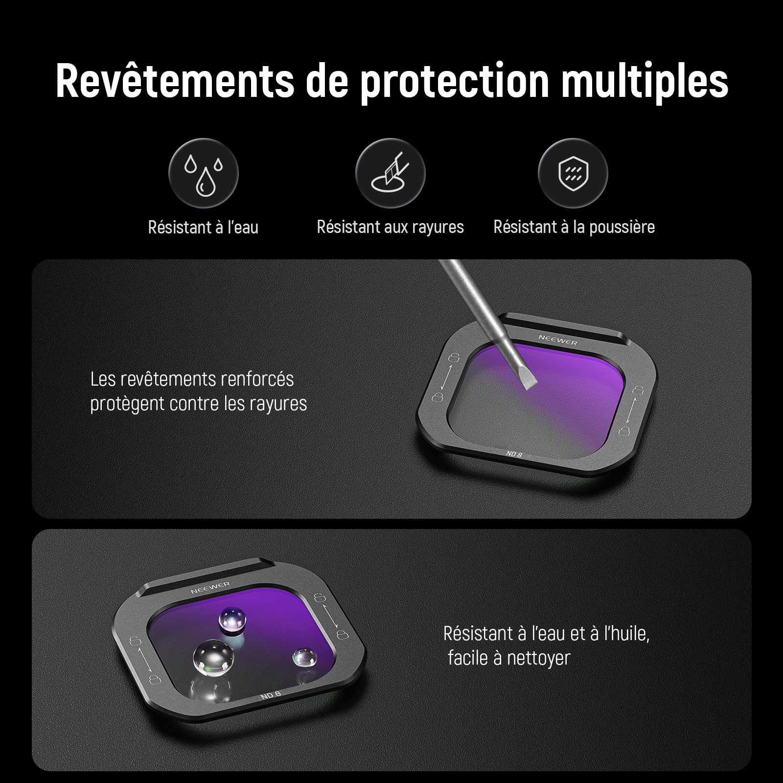 NEEWER ND8/ND16/ND32/ND64 Filtre d'objectif de téléphone pour Cage iPhone PA073/PA074