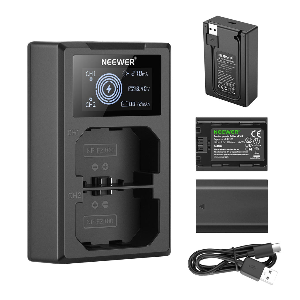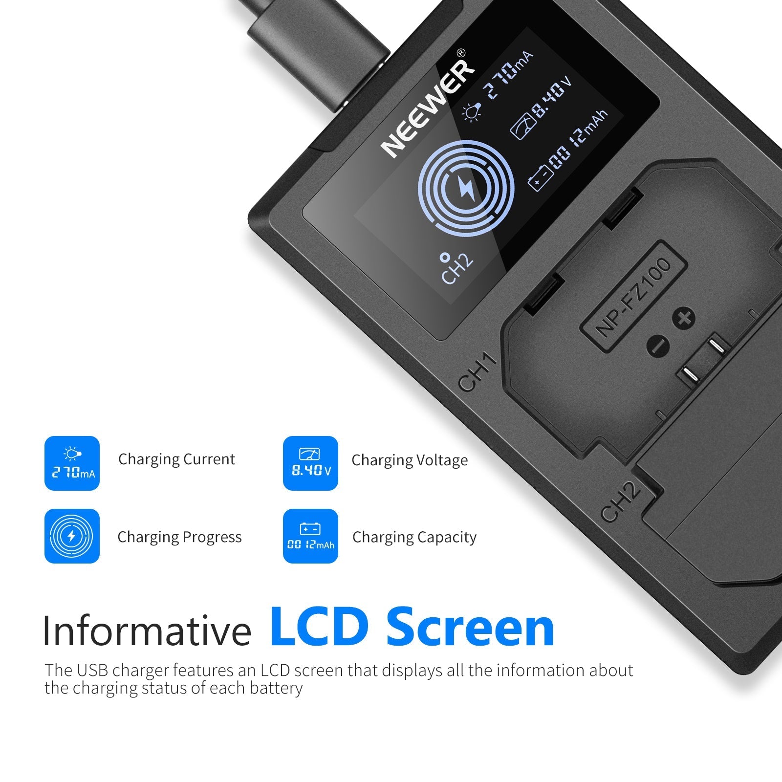 NEEWER Ensemble de chargeur de batterie de remplacement amélioré Compatible avec Sony NP-FZ100