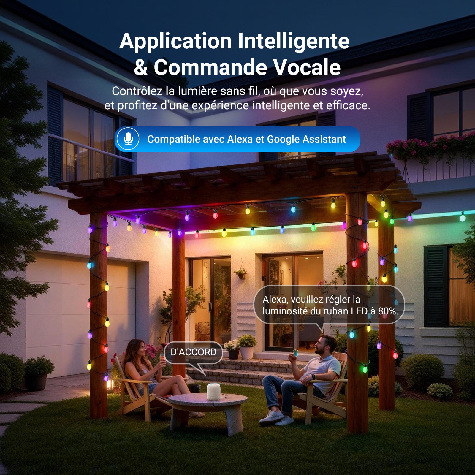 • 【App sans fil et commande vocale intelligente】 Connectez-vous via Bluetooth à l'app NEEWER Home.Vous pouvez ajuster luminosité ou changer de mode rapidement grâce au boîtier de commande inclus.De plus,compatible avec Google Assistant Alexa,cette guirlande lumineuse LED intelligente d'extérieur permet un contrôle via des appareils intelligents grâce à de simples commandes vocales.Note:Compatible UNIQUEMENT avec routeurs Wi-Fi 2,4G ou points d'accès mobiles;réseaux 5G ne sont PAS pris en charge