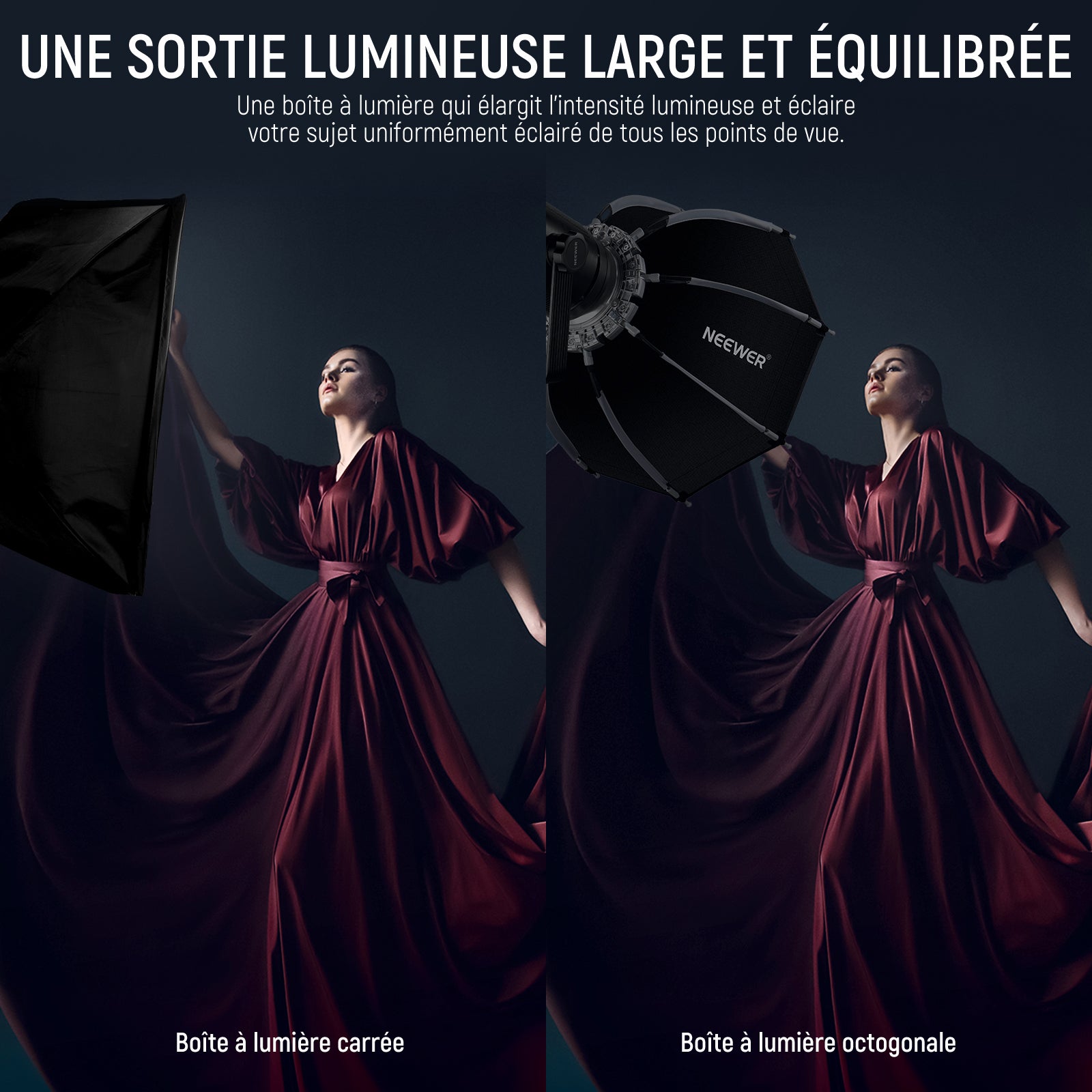 - 【Premium Octagonal Softbox】 Améliorez vos portraits, mariages, photographies de mode, enregistrements vidéo, streaming en direct et interviews avec cette boîte à lumière octogonale essentielle de 22"/55cm. Les intérieurs argentés intensifient la source de lumière tout en conservant les vraies couleurs. Comprend des diffuseurs et une grille pour atténuer les reflets et éliminer les ombres. Légère (1,7lb/0,75kg) avec une structure en alliage de nylon et un sac de transport pour l'extérieur