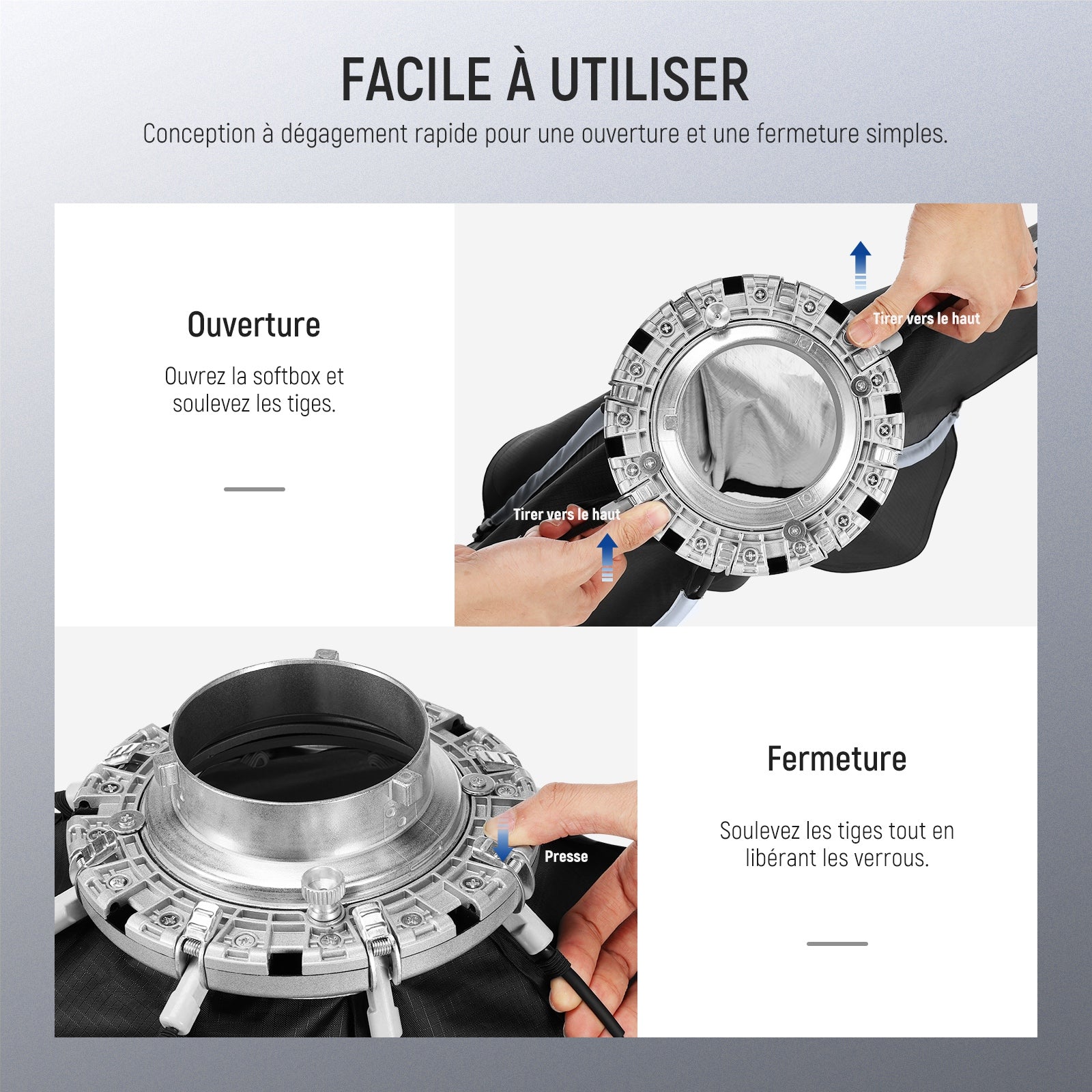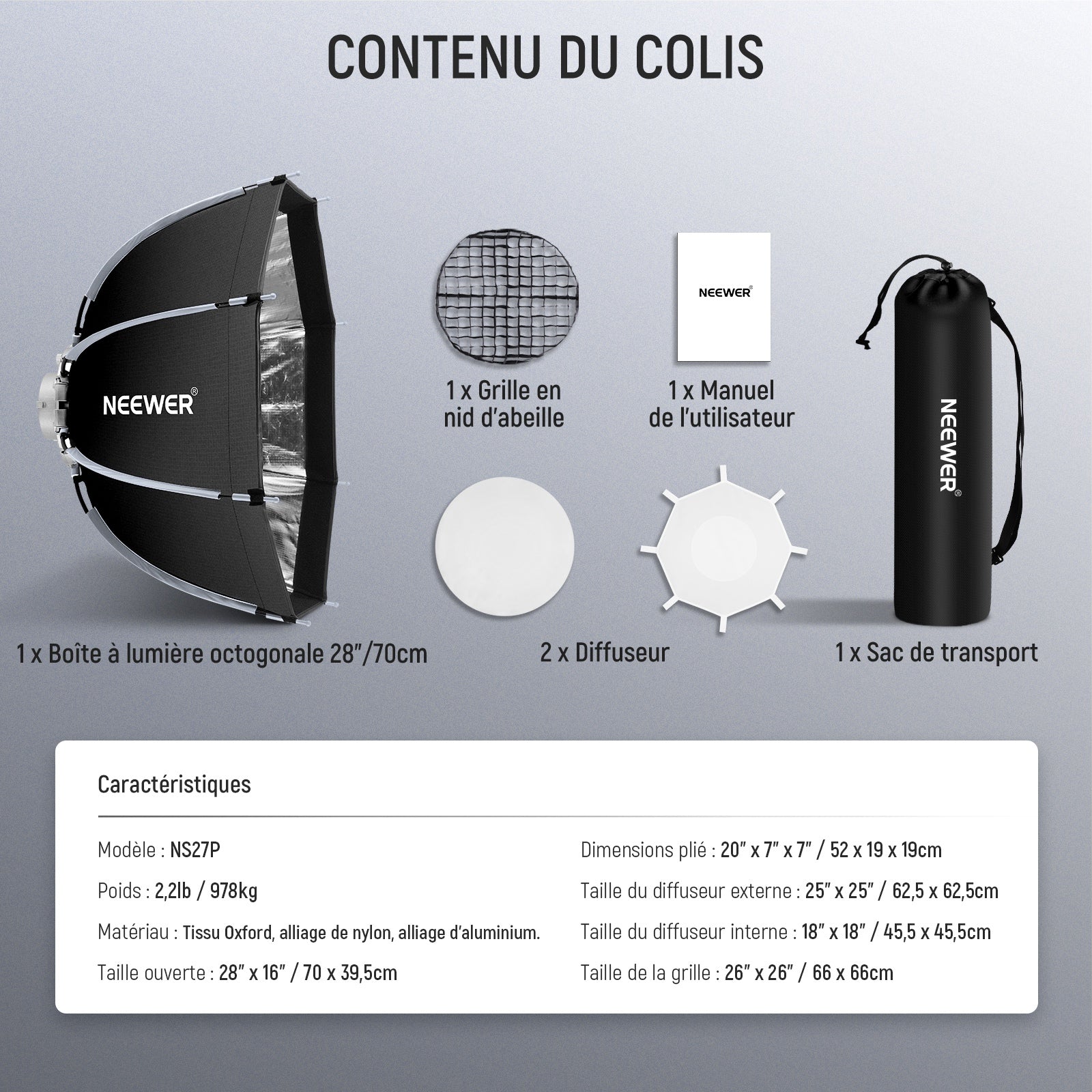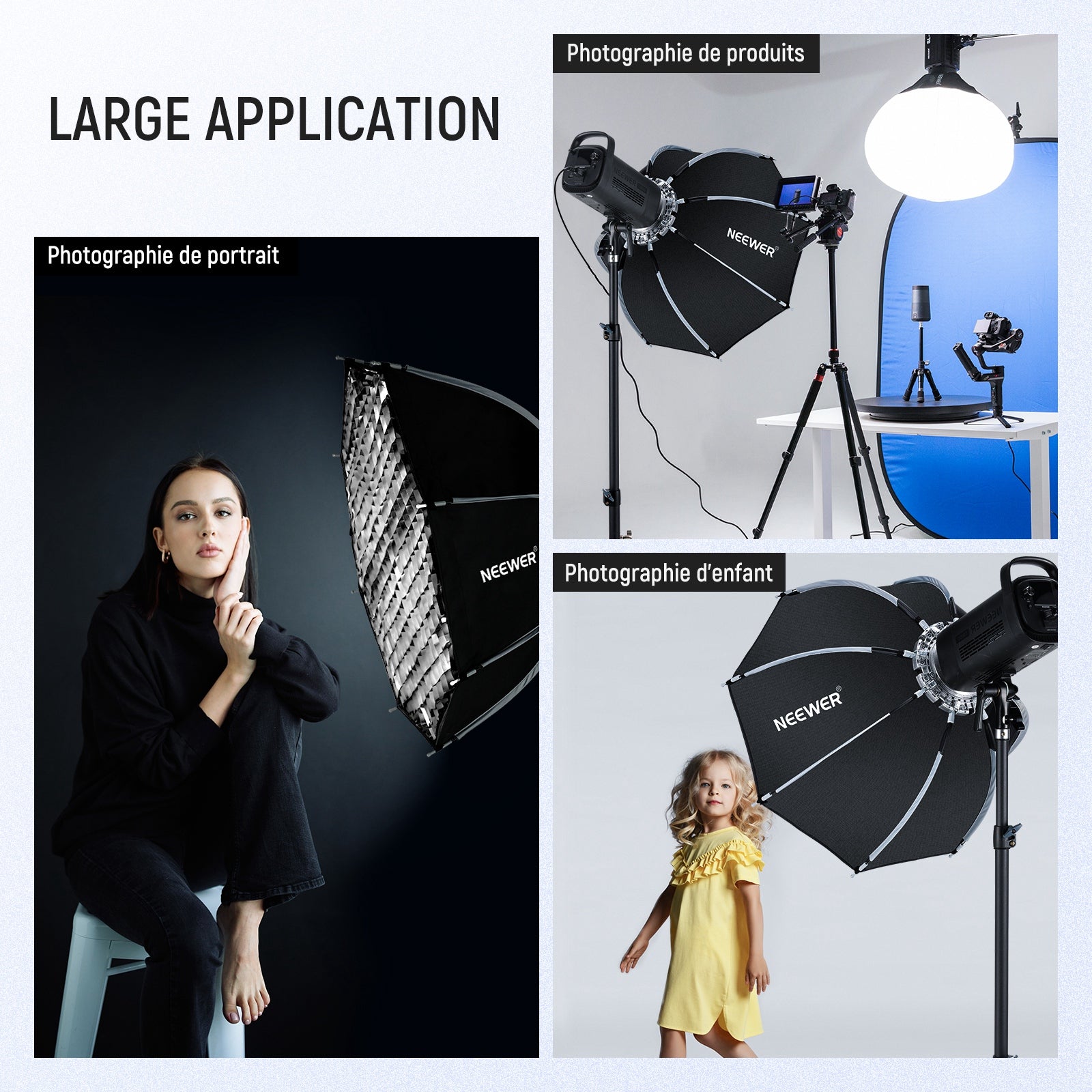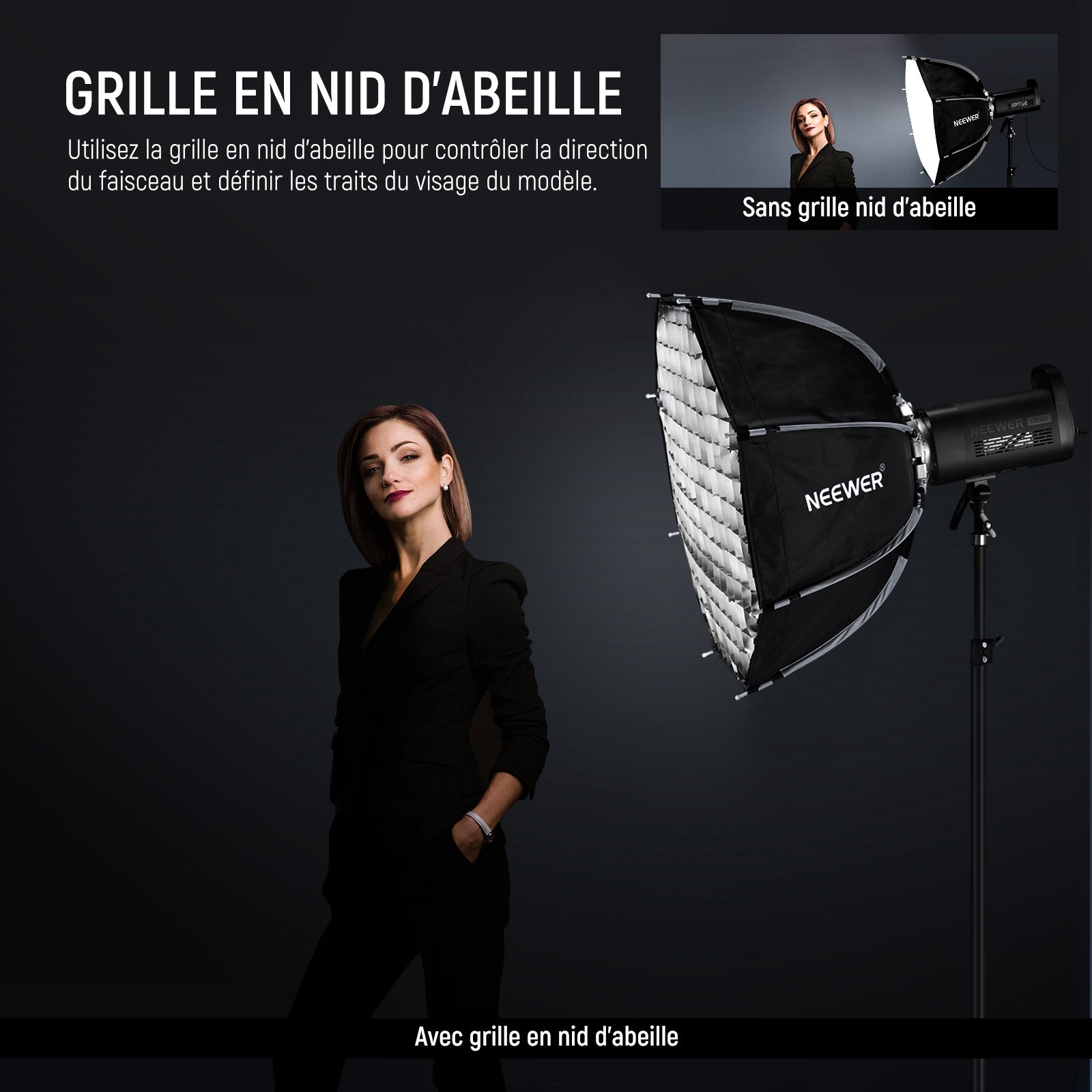 NEEWER Softbox Octogonale avec Grille Nid d'Abeille 45cm/55cm/70cm/90cm