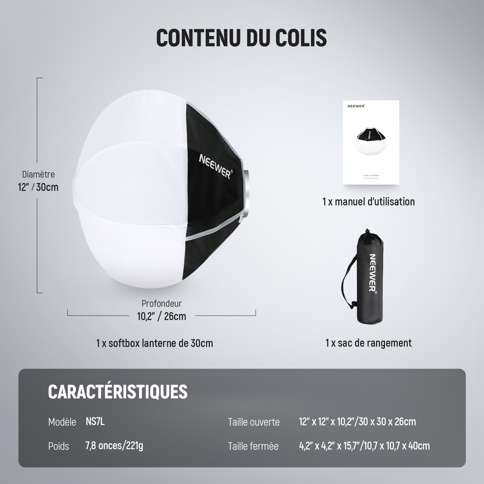 NEEWER NS7L Softbox Lanterne 30cm pour Lampe Vidéo LED HS60B