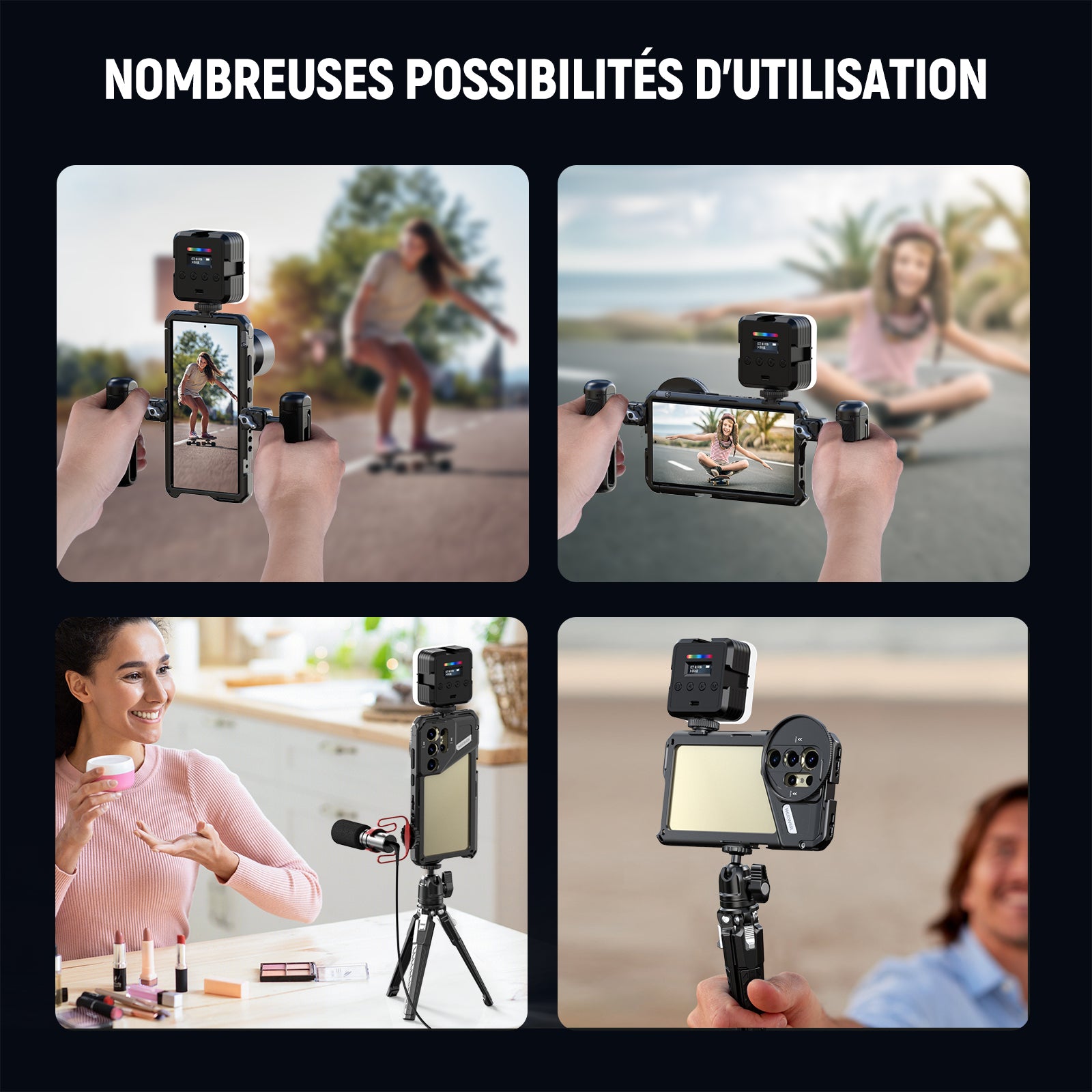 - 【Nombreux Points de Montage pour Accessoires】Avec des filetages 1/4" et des fixations de type cold shoe, cette cage peut être utilisée avec la Poignée Latérale à Démontage Rapide PA045, les Deux Poignées Latérales PA026, la Poignée Latérale avec Déclencheur Sans Fil Bluetooth PS005E, le Mini-Éclairage LED PL81, l'Éclairage RVB61/RGB62, le Micro Sans Fil CM22/CM28, le Mini-Micro Vlog Pro CM14, le Trépied Flexible T30, le Mini-Trépied T29/T31, le Trépied de Voyage Carbone TP15 et plus encore.