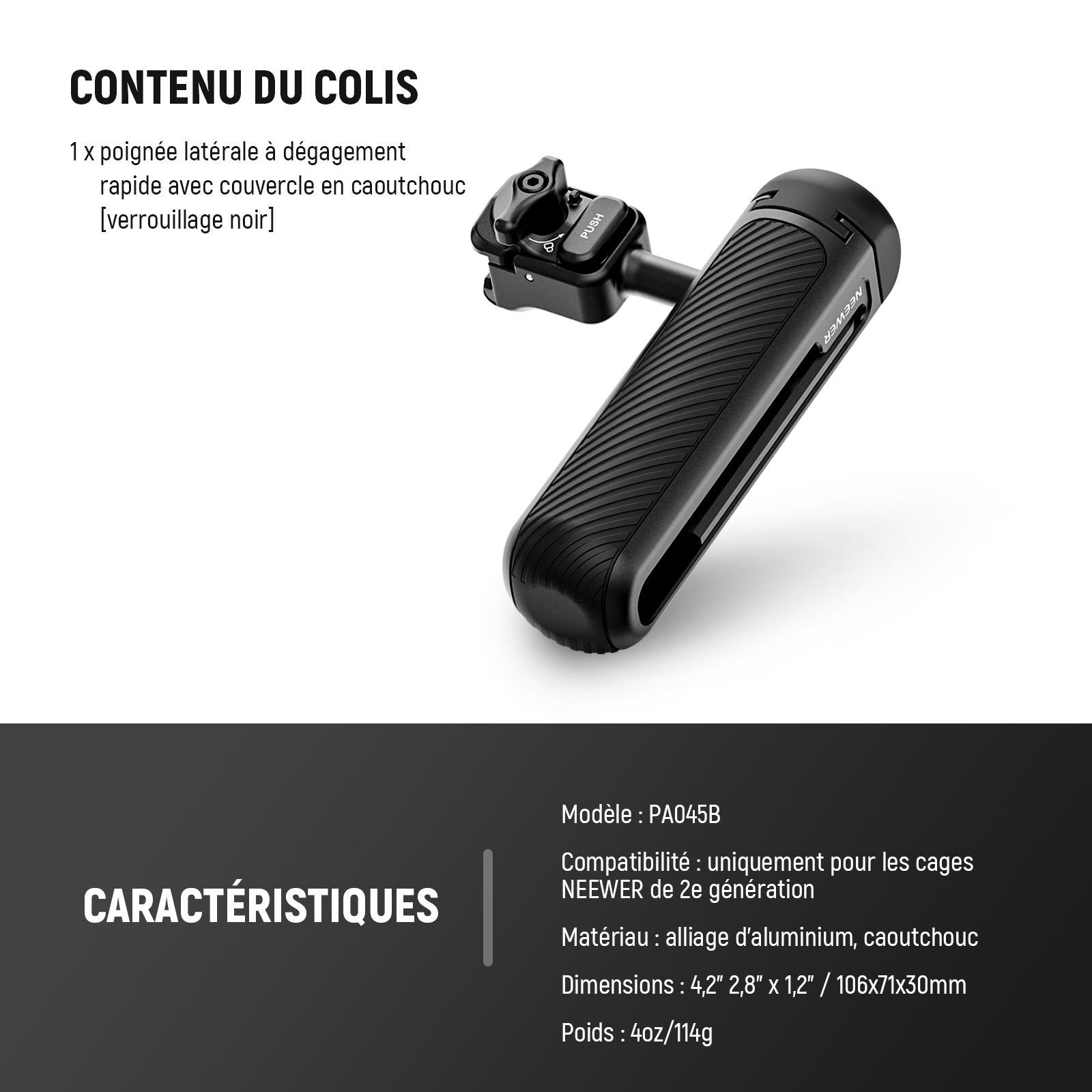 NEEWER PA045 Poignée latérale à dégagement rapide pour cage de Téléphone