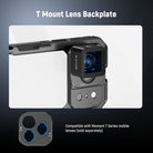 - Plaque arrière T Mount- Compatible avec les objectifs mobiles Moment série T, y compris anamorphique, macro 10x, téléobjectif 58 mm, grand angle 18 mm et fisheye 14 mm (objectifs vendus séparément).