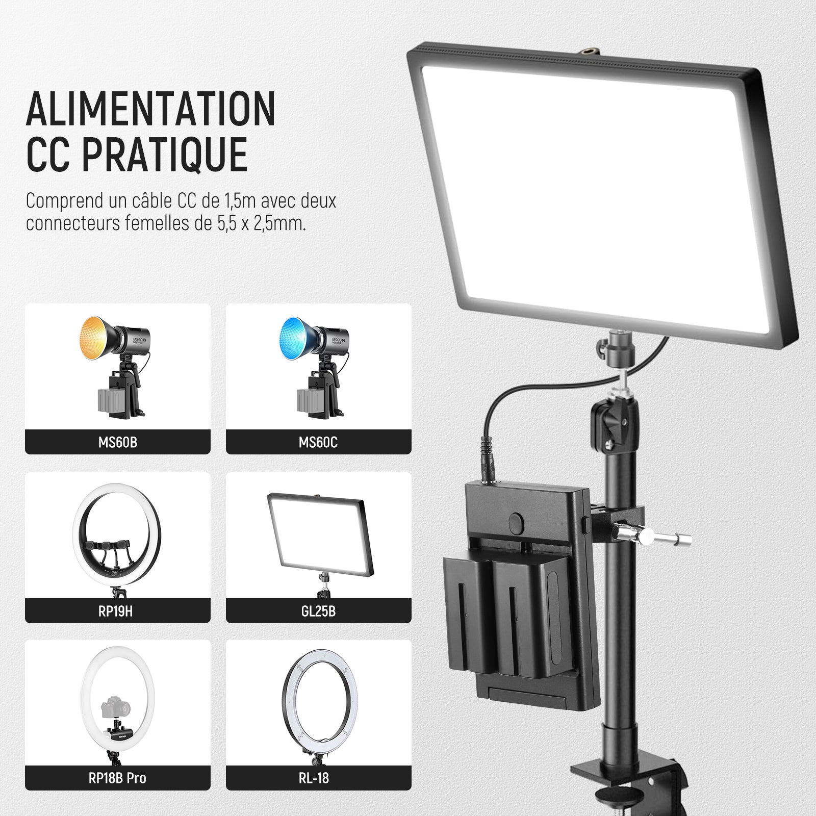 - 【Alimentation CC pratique】 Comprend également un câble CC de 1,5m avec deux connecteurs femelles de 5,5 x 2,5mm. Il vous aide à connecter la plaque de batterie à une lampe vidéo LED de studio pour l'alimentation électrique et vous permet de déplacer la lumière partout, compatible avec Aputure AL-M9, compatible avec ZHIYUN Molus G60 60W Pocket COB Light et NEEWER 18 Anneau lumineux en pouces MS60B MS60C 660 RGB660 et plus