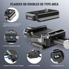 • 【Plaques QR de type Arca doubles】 Le kit de plaque de montage de batterie en V comprend une plaque de serrage de caméra à dégagement rapide de type Arca avec une goupille de sécurité anti-arrêt rétractable pour fixer votre caméra en place, et une base de type Arca équipée de trous filetés de 1/4" et 3/8" pour la compatibilité avec diverses têtes de trépied