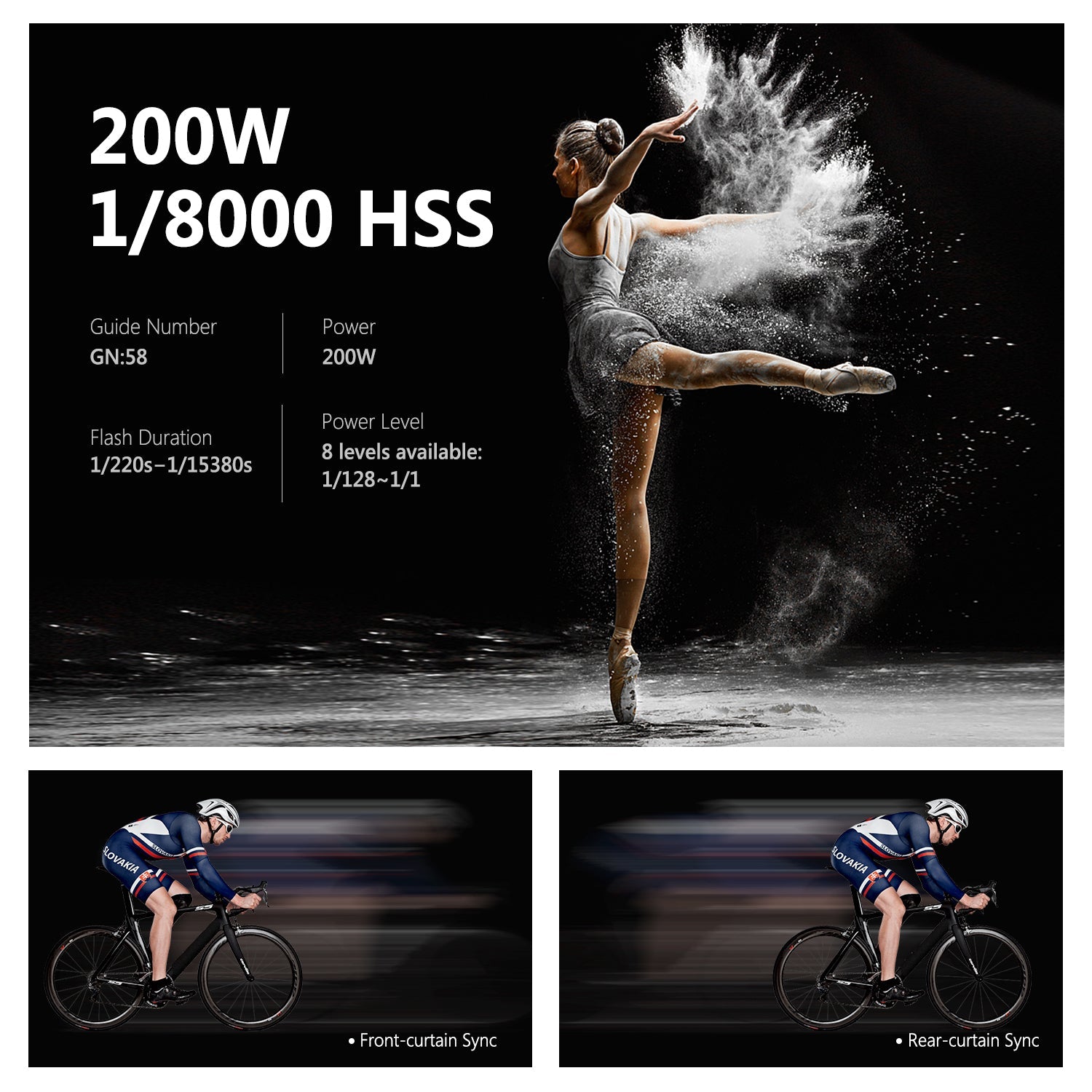 - Mode de synchronisation : synchronisation haute vitesse (jusqu'à 1/8 000 secondes), synchronisation du premier rideau et synchronisation du deuxième rideau