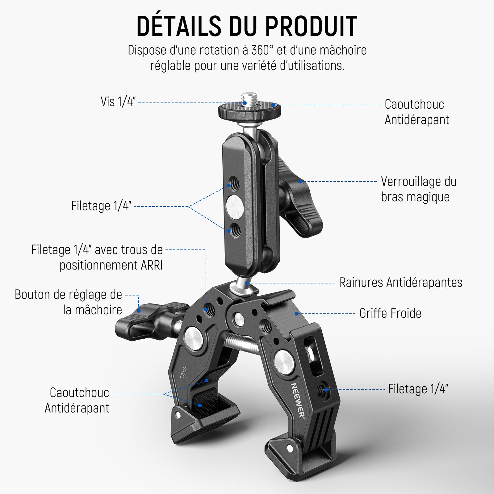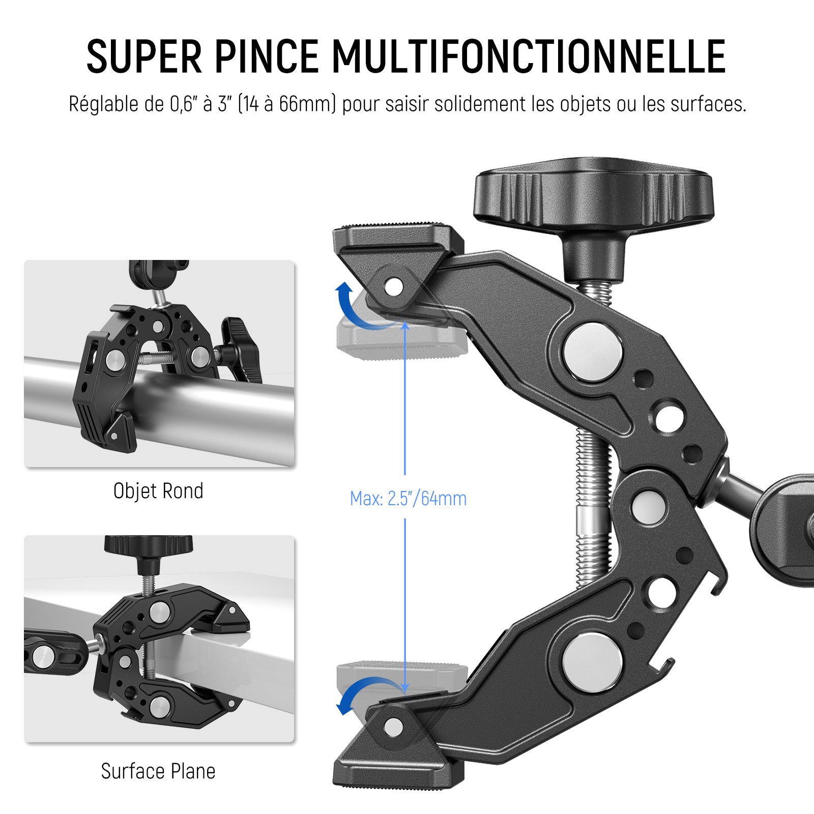 NEEWER ST83 Super Pince avec Bras Magique à Double Rotule 3"