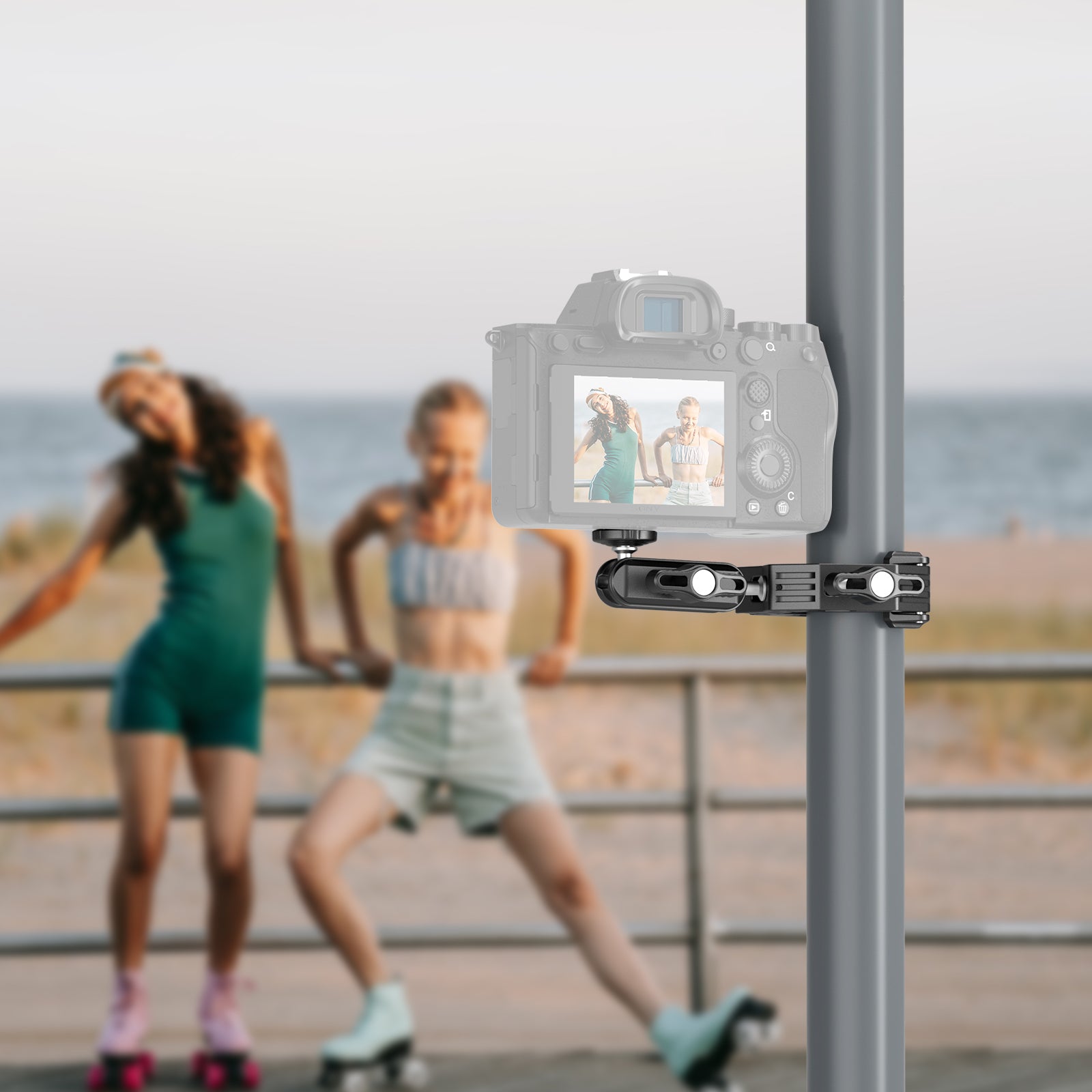 - 【Points de montage Multiples】avec des filetages de 1/4" ,des points de localisation ARRI et un support de griffe froide intégré,la super pince et le bras magique peuvent connecter de nombreux accessoires comme un moniteur,une plate-forme d'épaule et une cage de caméra.Un adaptateur de montage pour griffe amovible peut être facilement fixé via une vis 1/4" pour un montage rapide de lumières de remplissage LED,de microphones,etc. (Non compatible aux flashs Speedlite sur caméra)