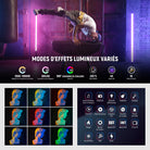 - 【Pixels 24 Bits Contr?lables Indépendamment】 Les pixels 24 bits vous permettent de régler indépendamment la luminosité, la température de couleur et les effets d'éclairage de chaque section de pixel. Cet équipement d'éclairage vidéo LED possède 7 effets de pixels (Remplacement de Couleur, Rotation de Couleur, Couleur Simple/Double/Triple, Effets Arc-en-ciel et Flamme) et 18 scènes spéciales, idéales pour l'enregistrement vidéo, les prises de vue en studio, les selfies, la photo, le streaming…