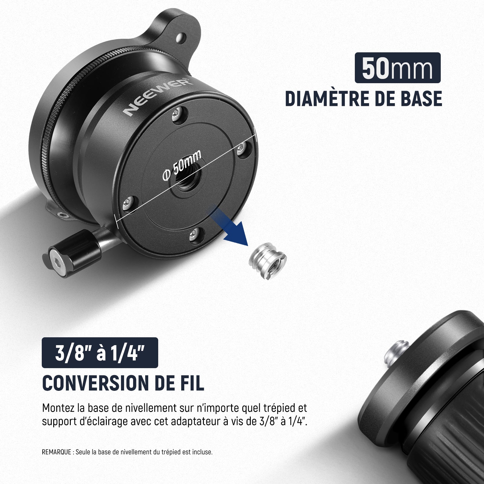 NEEWER GM11 Base de Mise à Niveau pour Trépied (⌀50mm) avec Niveau à Bulle